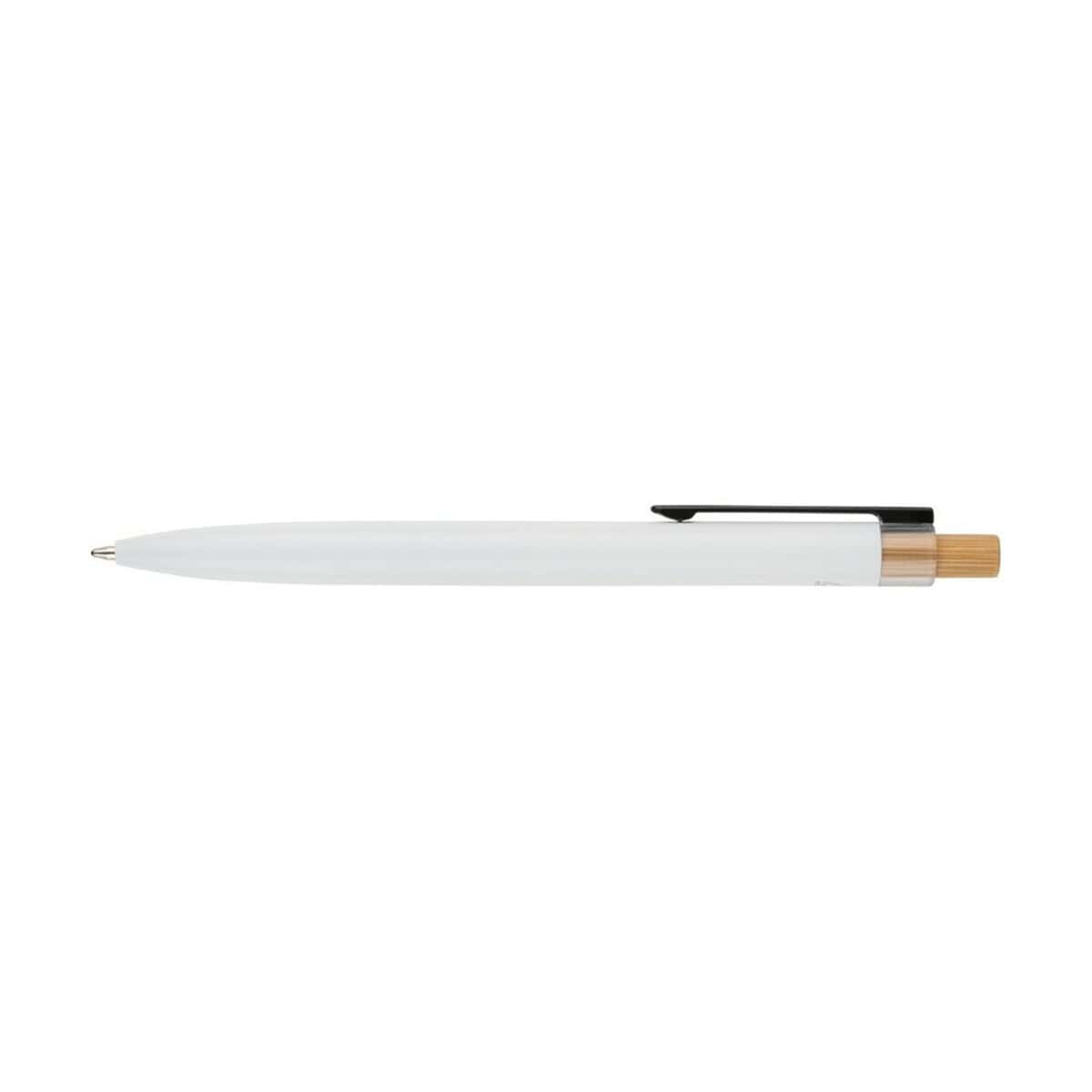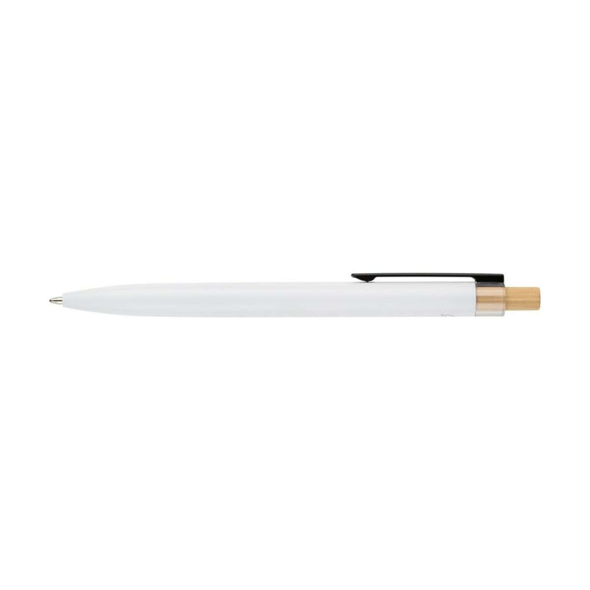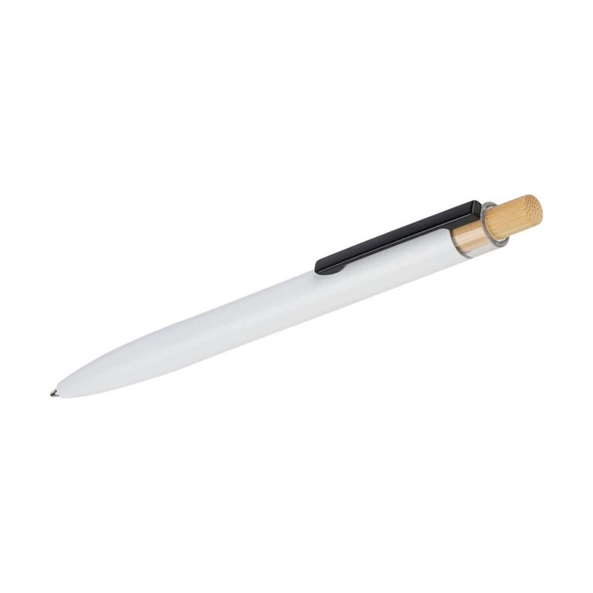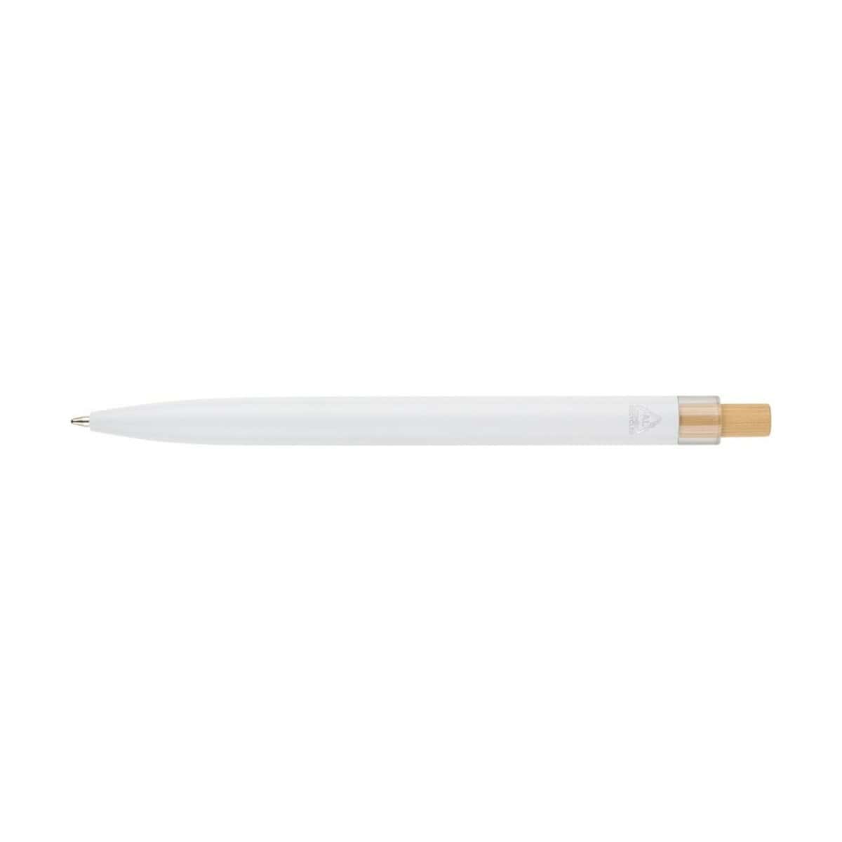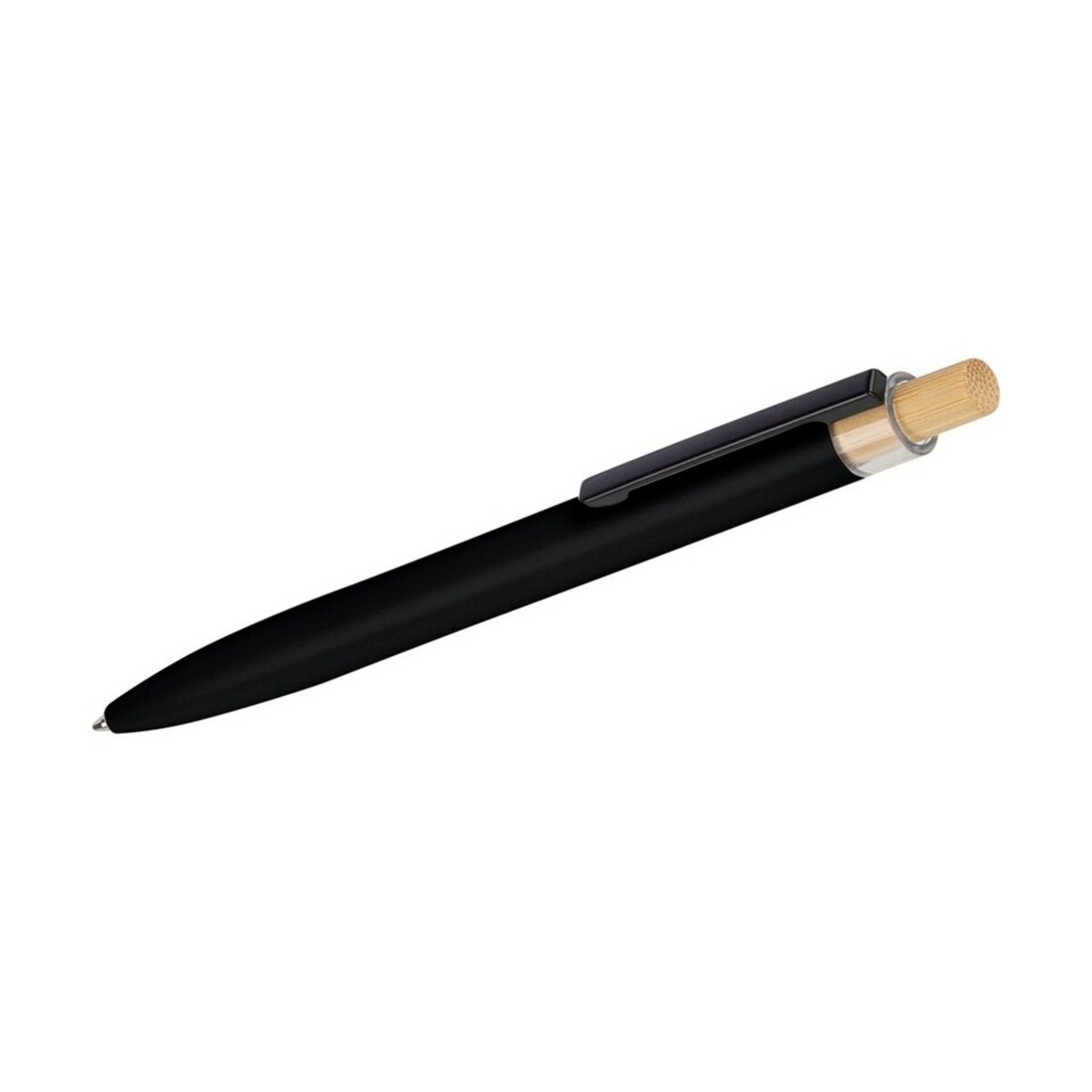 Długopis to znakomity sposób, by połączyć troskę o planetę z prestiżem komunikacji marki. Wykonany z aluminium pochodzącego z recyklingu, wzbogacony o przycisk z naturalnego bambusa oraz korpus z tworzywa RPET, wyróżnia się nie tylko wytrzymałością, ale i wyważonym, 16,8-gramowym ciężarem, który zapewnia komfort nawet przy długim pisaniu. Niebieski wkład wystarcza na około 700 metrów notatek, a dyskretnie wytłoczona ikona recyklingu podkreśla ekologiczny charakter produktu 😊