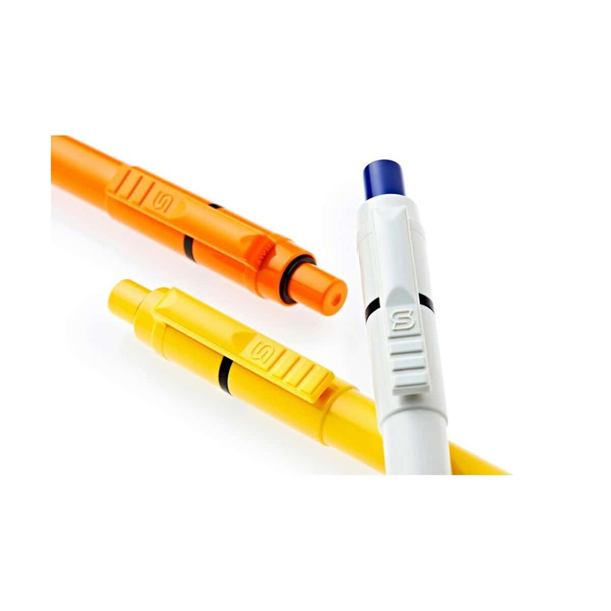 Długopis ABS Stilolinea Baron to znakomity, solidnie wykonany gadżet, który przyciąga uwagę elegancką linią oraz bogatą paletą kolorów: od klasycznego czarnego, przez energetyczny pomarańczowy i żółty, aż po stonowany szary czy błękitny. Jego wytrzymała obudowa z tworzywa ABS oraz lekkość – zaledwie waga: 9 g – sprawiają, że nawet wielogodzinne sporządzanie notatek nie męczy dłoni. Wkład w niebieskim kolorze oraz wysokiej jakości tusz German Dokumental Ink gwarantują płynność i równomierną linię pisania, a subtelna, kolorowa końcówka pozwala dopasować akcent do barw firmowej identyfikacji 😊.