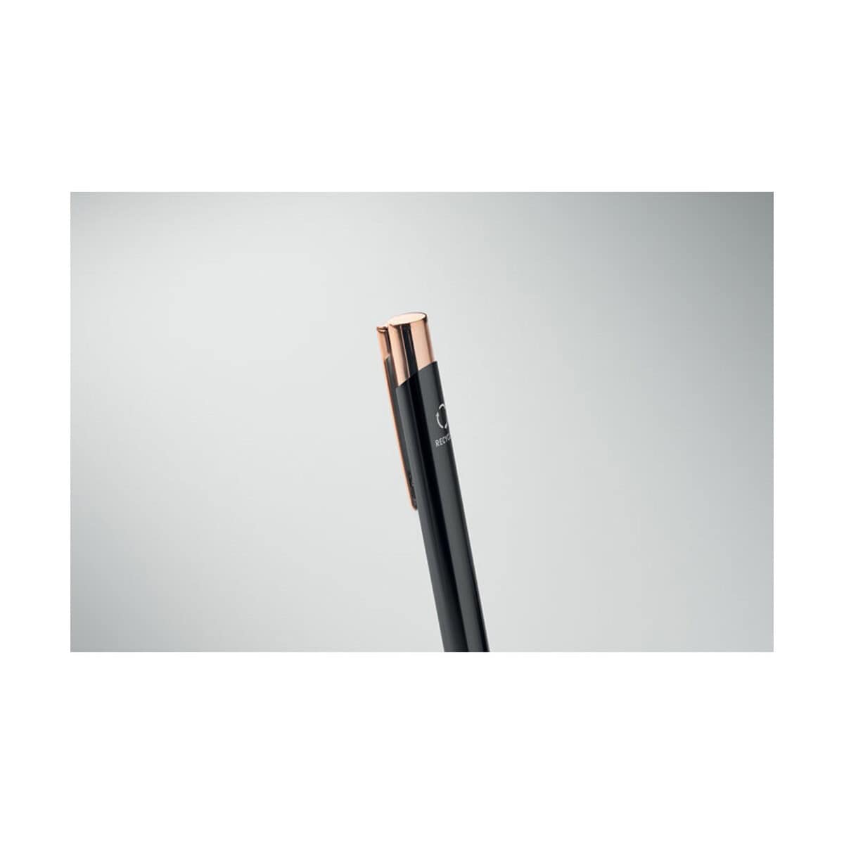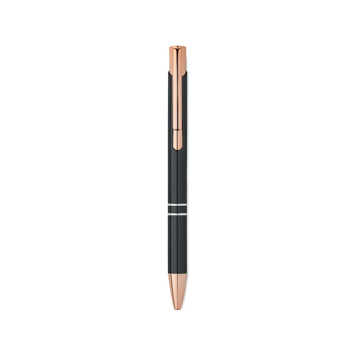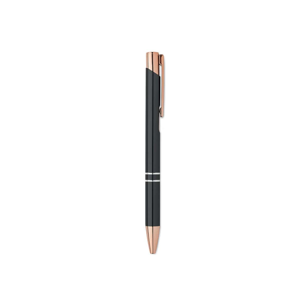 Długopis aluminiowy z rec. BERN ROSE to nowoczesny, a zarazem elegancki gadżet, który zachwyci każdego miłośnika praktycznych dodatków. Wykonany z aluminium z recyklingu, świetnie wpisuje się w ideę zrównoważonego rozwoju, co czyni go doskonałym wyborem dla Twojej firmy dbającej o środowisko. Mechanizm przyciskowy sprawia, że pisanie jest szybkie i wygodne, a niebieski tusz gwarantuje czytelny zapis. Ten model sprawdza się zarówno w segmencie „Długopisy metalowe z logo”, jak i „Długopisy ekologiczne z logo”, łącząc wytrzymałość metalu z ekologicznym przesłaniem 🙂.