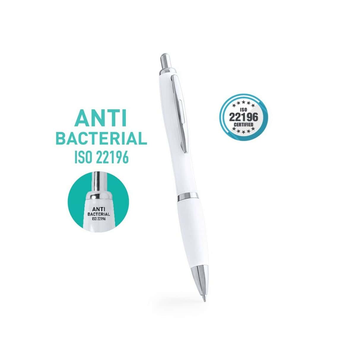 Długopis antybakteryjny to nowatorski, a zarazem niezwykle praktyczny gadżet promocyjny, który podbije serca wszystkich stawiających na bezpieczeństwo i higienę. Dzięki specjalnemu dodatkowi w postaci nanosrebra, produkt skutecznie hamuje rozwój drobnoustrojów, a tym samym gwarantuje czystość powierzchni nawet przy intensywnym użytkowaniu. Właściwości potwierdza zgodność z wymaganiami normy ISO 22196:2011, co czyni go znakomitym wyborem dla placówek medycznych, laboratoriów, gabinetów kosmetycznych czy branży spożywczej – wszędzie tam, gdzie czystość to priorytet. 🩺