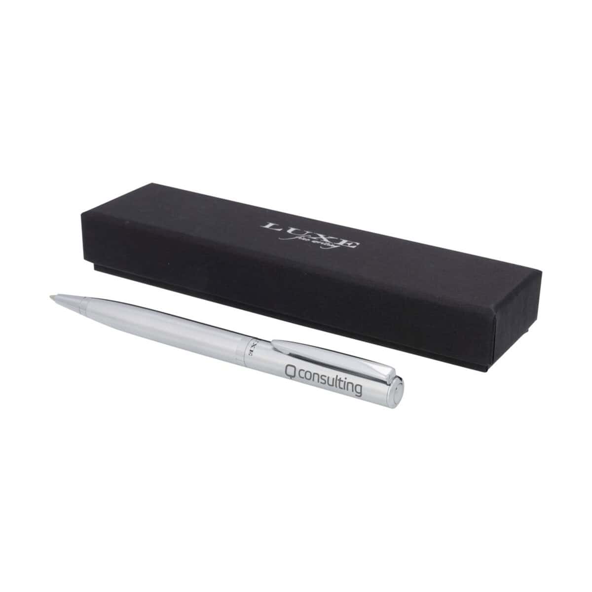 Długopis City to wyjątkowo elegancki i lekki gadżet piśmienniczy, który wyróżni każdą markę już od pierwszego kontaktu. Precyzyjnie wykonany z trwałego metalu, o kompaktowych wymiarach 13,5 × Ø 1 cm i niewielkiej wadze 23 g, stanowi znakomitą wizytówkę jakości dla Twojej firmy. Wersje z matowo-złotym wykończeniem z delikatnymi akcentami w kolorze złota lub matowo-srebrnym z akcentami w chromie podkreślają prestiż, a czarny wkład premium gwarantuje płynność pisania. Każdy egzemplarz zapakowany jest w stylowe pudełko upominkowe „LUXE”, co czyni go perfekcyjnym rozwiązaniem na ekskluzywne prezenty biznesowe 🙂
