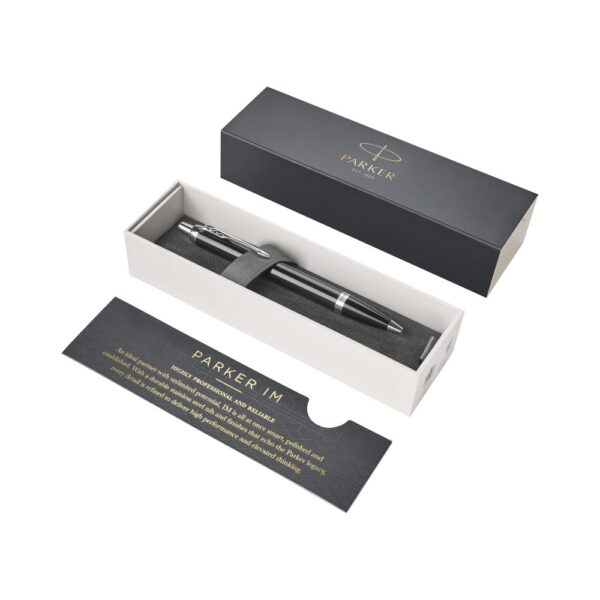 Parker IM to profesjonalny i niezawodny partner, który niesie ze sobą nieograniczony potencjał. Połączenie inteligentnego wzornictwa i trwałego wykończenia ze stali nierdzewnej to jeden z głównych atutów tego długopisu. Każdy element został starannie zaprojektowany i dopracowany, aby zapewnić maksymalną niezawodność. Ten luksusowy długopis jest dostarczany w ekskluzywnym pudełku prezentowym Parker i wyposażony jest w opatentowany wkład QuinkFlow.