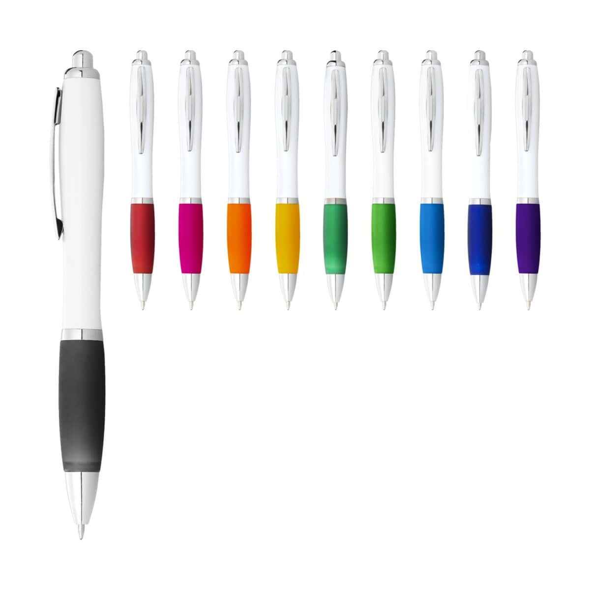 Długopis Nash z białym korpusem i kolorowym uchwytem to perfekcyjny sposób, by subtelnie wyróżnić logo i przyciągnąć uwagę klientów już przy pierwszym podpisie 😃. Dzięki klasycznemu, śnieżnobiałemu korpusowi i przyjemnemu w dotyku, kontrastowemu uchwytowi ten gadżet z kategorii „Długopisy plastikowe z logo” oraz „Długopisy metalowe z logo” zachwyca estetyką i funkcjonalnością jednocześnie. Mechanizm automatyczny gwarantuje szybkie wysunięcie wkładu, a miękka powierzchnia uchwytu sprawia, że nawet długie notatki stają się komfortowe.