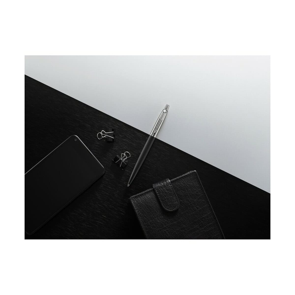 Długopis Parker Jotter Core to klasyka, która łączy elegancję z nowoczesną funkcjonalnością. Wykonany z wysokiej jakości metalu oraz solidnej stainless steel, waży jedynie 56 g, a przy wymiarach ø1 x 12,8 cm pewnie leży w dłoni i nie obciąża kieszeni marynarki czy notesu. Niebieski wkład w niebieskim kolorze zapewnia płynne, niezawodne pisanie, a całość prezentuje się luksusowo dzięki stylowemu pudełko upominkowe. Dostępna paleta barw – niebieski, czarny, fuksji, pomarańczowy, fioletowy, czerwony i błękitny – pozwala dobrać odcień perfekcyjnie pasujący do identyfikacji wizualnej Twojej marki. 🙂