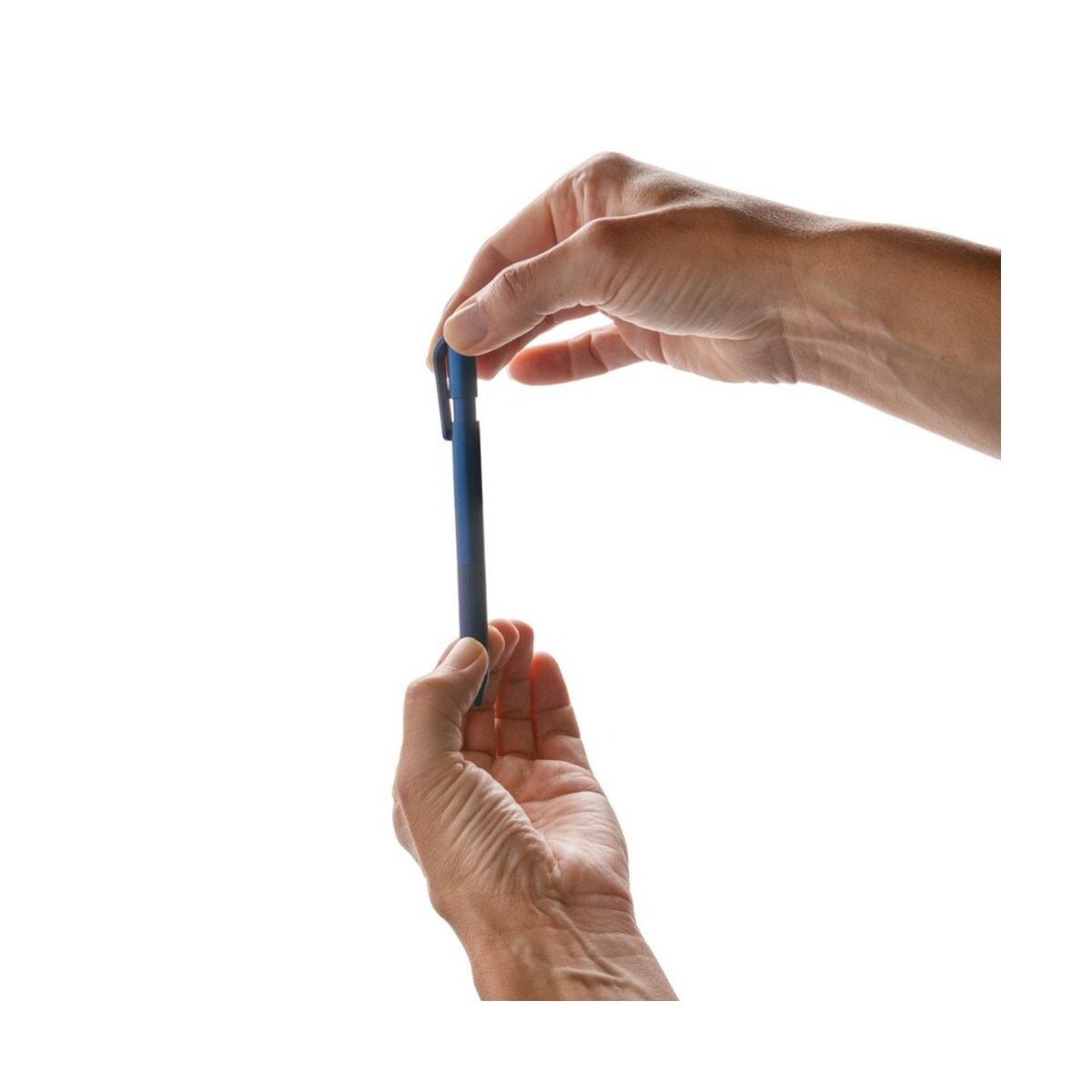 Zawartość materiałów pochodzących z recyklingu w tym produkcie osiąga imponujące 67%, co sprawia, że jest on doskonałym wyborem dla branż zaangażowanych w działania proekologiczne takich jak technologia, edukacja czy marketing. Długopis wyposażony jest w niemiecki wkład Dokumental® w kolorze niebieskim, który zapewnia płynne pisanie przez około 1200 m. Ponadto, kulka wykonana z TC (termoplastyczna guma) gwarantuje wygodę pisania, co jest nieocenione podczas długich godzin pracy przy pisaniu notatek czy podpisów.
