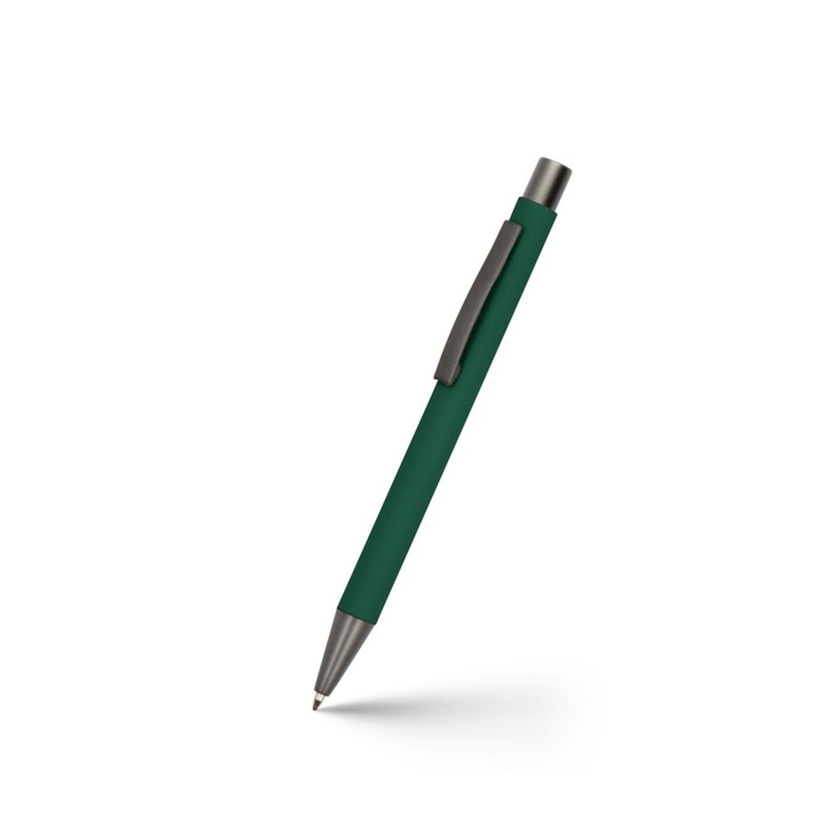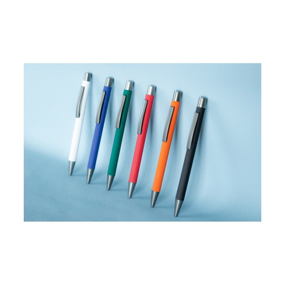 Długopis posiada kolorowy trzon z wygodnym, gumowym wykończeniem, które gwarantuje komfort pisania nawet podczas długich sesji. Dodatkowe, szare elementy nadają mu nowoczesny charakter. Zawiera wkład w kolorze niebieskim, który jest stabilny i zapewnia płynność pisania. Wymiary produktu to Ø1 x 13,7 cm, a jego waga to zaledwie 18 g, co czyni go lekkim i łatwym w transporcie.