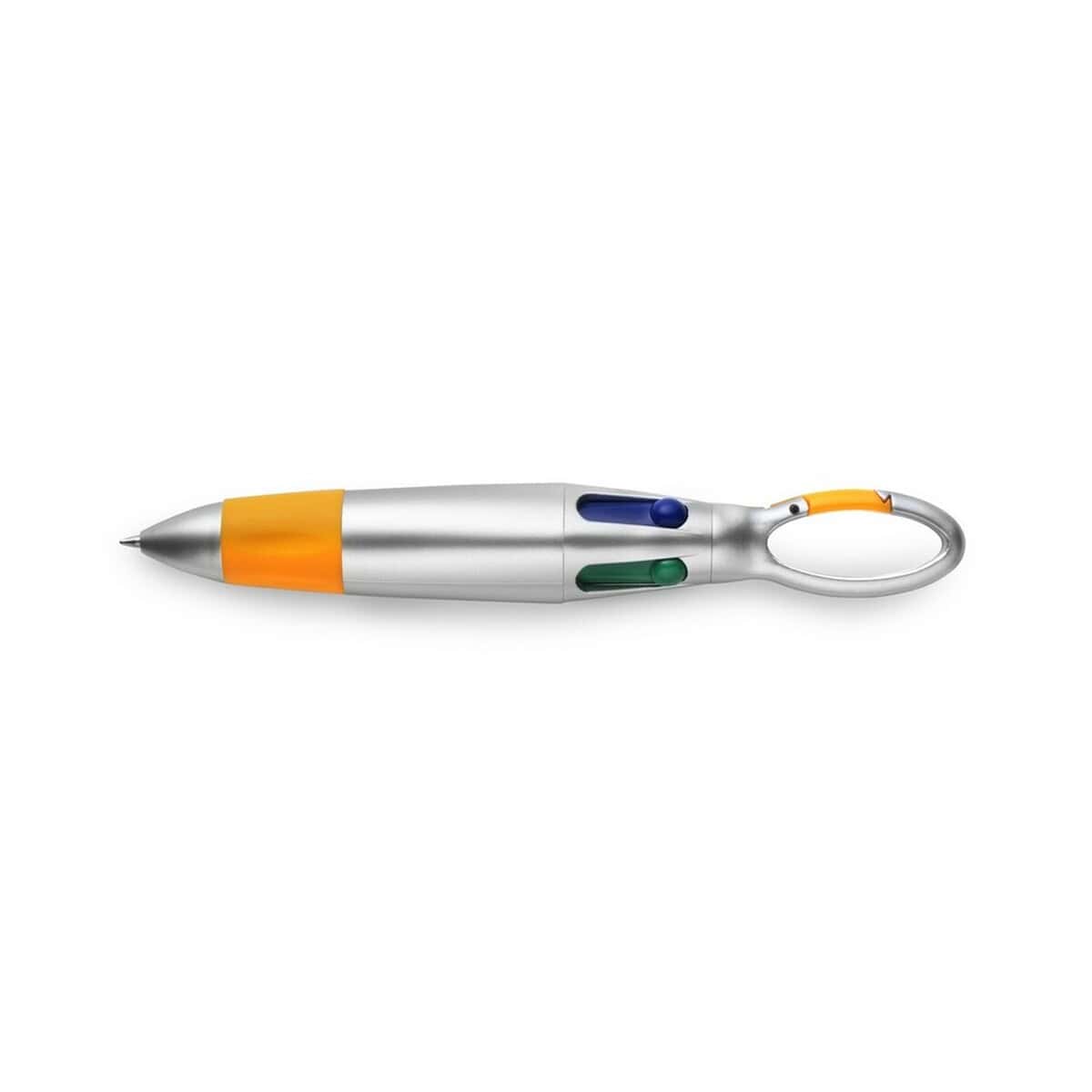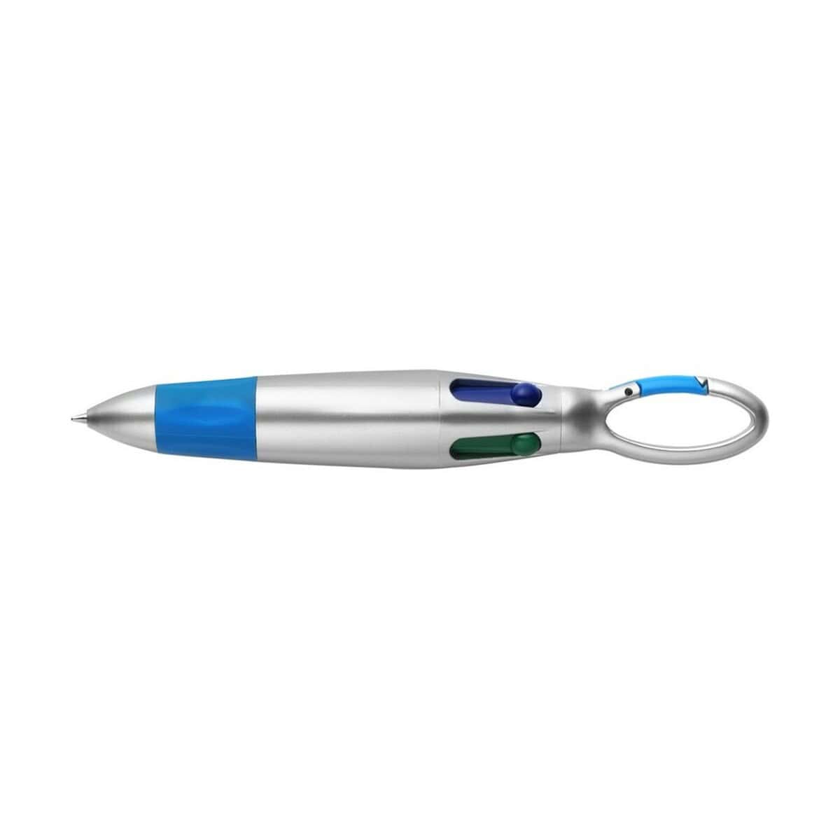 Długopis, wielokolorowy wkład to prawdziwie wszechstronny gadżet, który sprawi, że codzienne notowanie nabierze zupełnie nowych barw 🙂 Dzięki niemu Twoi klienci, kontrahenci czy pracownicy będą mogli jednym kliknięciem wybrać jeden z aż 4 kolorów wkładu: niebieski, czerwony, czarny oraz zielony. Praktyczny karabińczyk pozwala przypiąć go do plecaka, smyczy lub kluczy, co gwarantuje, że zawsze znajdzie się pod ręką. Lekka konstrukcja – zaledwie waga 14 g – oraz kompaktowe wymiary Ø1,9 x 13,5 cm czynią z niego przedmiot wyśmienicie dopasowany do pracy w terenie oraz pracy biurowej.