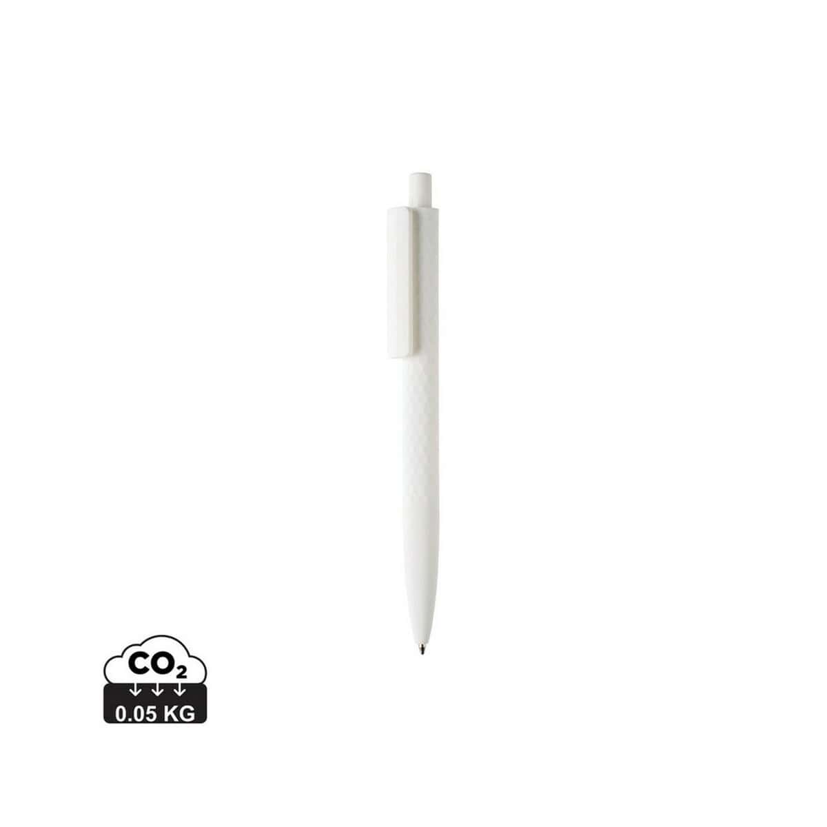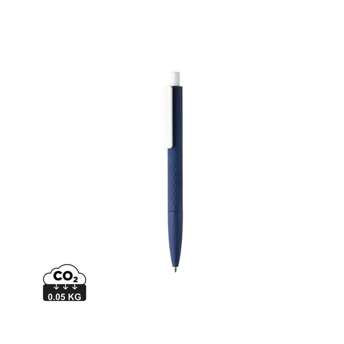 Długopis X3 to prawdziwa perełka w segmencie zarówno długopisów plastikowych z logo, jak i długopisów metalowych z logo. Jego charakterystyczny, diamentowy wzór oraz aksamitne, przyjemne w dotyku wykończenie czynią go niezwykle eleganckim, a jednocześnie funkcjonalnym. Dzięki wymiarom 14,0 x Ø 1,0 cm pewnie leży w dłoni, natomiast lekki, lecz wytrzymały materiał ABS gwarantuje komfort wielogodzinnego użytkowania. W środku skrywa niemiecki wkład Dokumental® w niebieskim kolorze, zapewniający płynne, wygodne pisanie nawet do 1200 m – za co odpowiada precyzyjna kulka TC. Co ważne, jego ślad węglowy wynosi jedynie 0,05 kg CO2, co czyni go wyborem przyjaznym środowisku 🙂.
