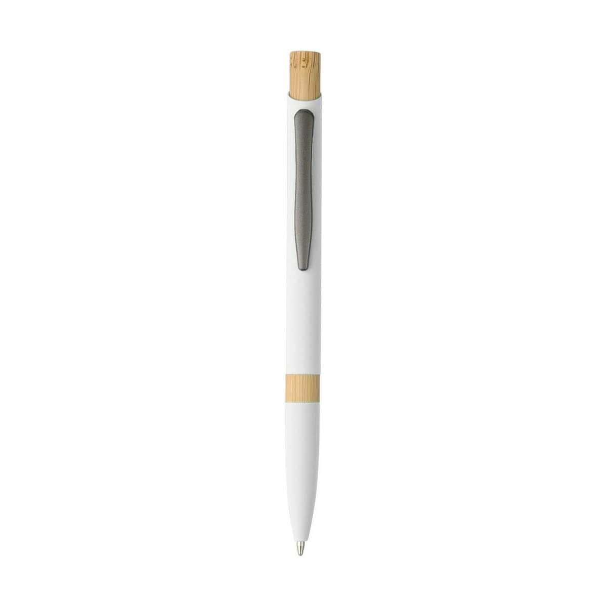Długopis z aluminium z recyklingu to znakomity wybór, gdy szukasz praktycznego i stylowego nośnika logo ♻️. Korpus wykonany z odzyskanego aluminium w połączeniu z bambusowym przyciskiem i pierścieniem nie tylko podkreśla proekologiczne wartości, ale też przyciąga wzrok eleganckim designem. Lekka waga 15 g oraz smukły kształt ø1 x 14 cm sprawiają, że pisanie staje się niebywale komfortowe, a gumowana powłoka gwarantuje pewny chwyt nawet podczas długich notatek. Niebieski tusz o grubości 1,0 mm pozwala zapisać około 800 m, co czyni ten produkt niezwykle trwałym.