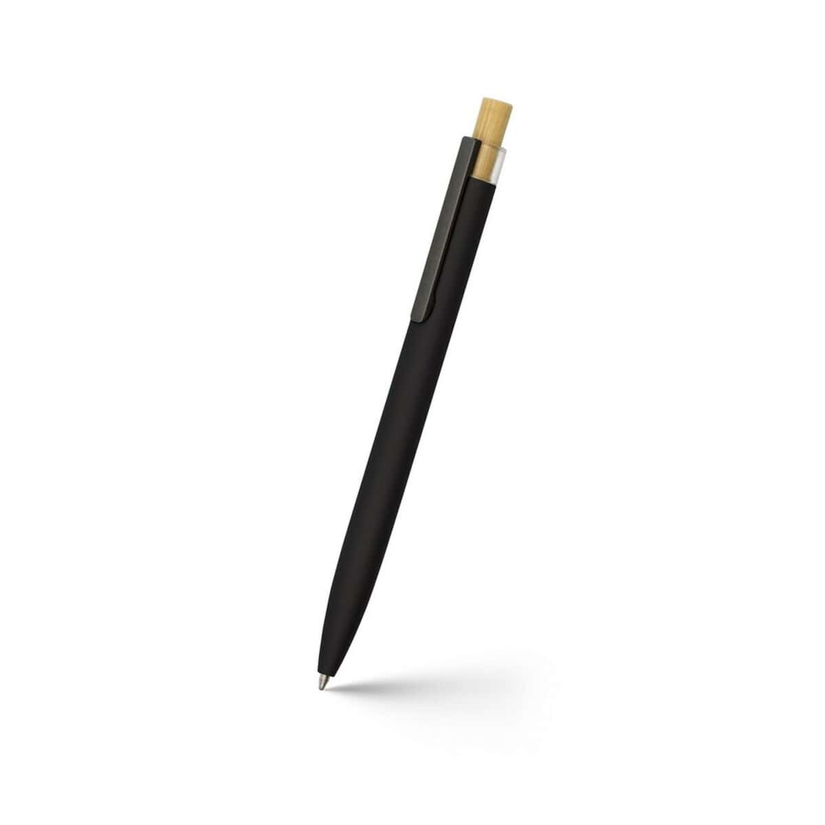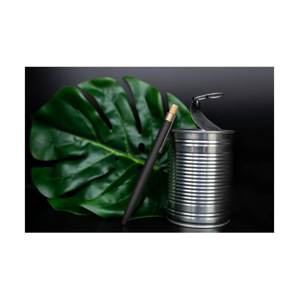 Długopis z aluminium z recyklingu | Randall to prawdziwy ambasador świadomej elegancji. Wykonany z połączenia aluminium z recyklingu, naturalnego bambusa oraz wytrzymałego RPET, przekonuje, że troska o planetę może iść w parze z nowoczesnym stylem 😊. Smukły trzon w odcieniach granatowym, czarnym, czerwonym lub szarym kontrastuje z dyskretnymi szarymi akcentami, a bambusowy przycisk nadaje całości przyjemnego, ekologicznego charakteru. Lekka konstrukcja – zaledwie 17 g – oraz kompaktowe wymiary Ø1 × 14 cm sprawiają, że długopis mieści się w każdej kieszeni i świetnie leży w dłoni. Niebieski wkład gwarantuje płynne, równe pismo, dlatego produkt sprawdzi się zarówno w biurze, jak i w podróży.