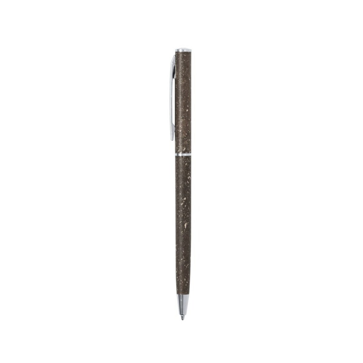 Wykonany głównie z łusek kawowych oraz ABS, kolor brązowy długopisu perfekcyjnie oddaje naturalne pochodzenie tego produktu. Rozmiary Ø0,8 x 12,9 cm sprawiają, że jest on komfortowy w użyciu dla każdego. Długopis z łusek kawowych z pewnością będzie doskonałym dodatkiem na każdym biurku, zarówno w domu, jak i w biurze.