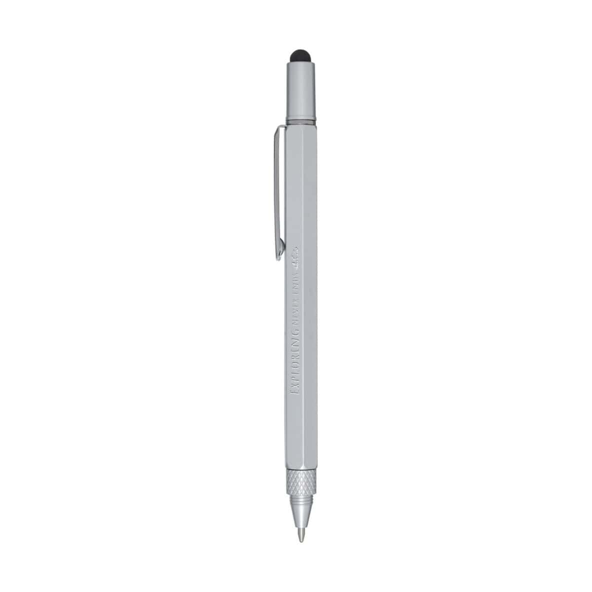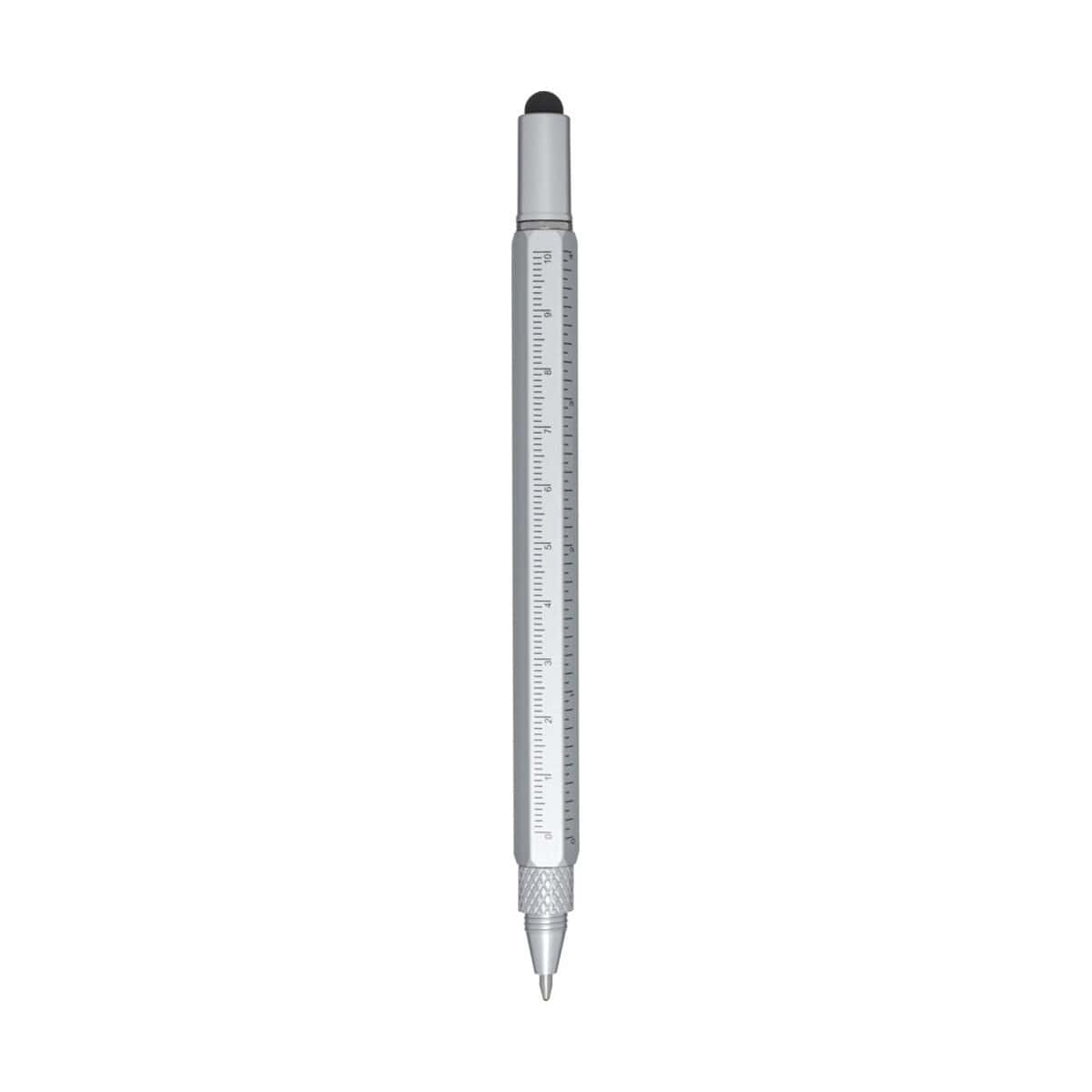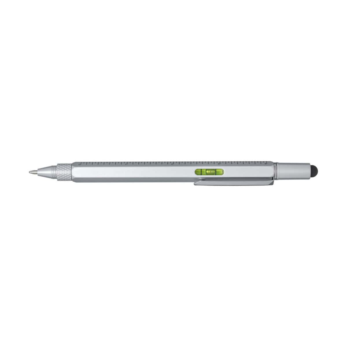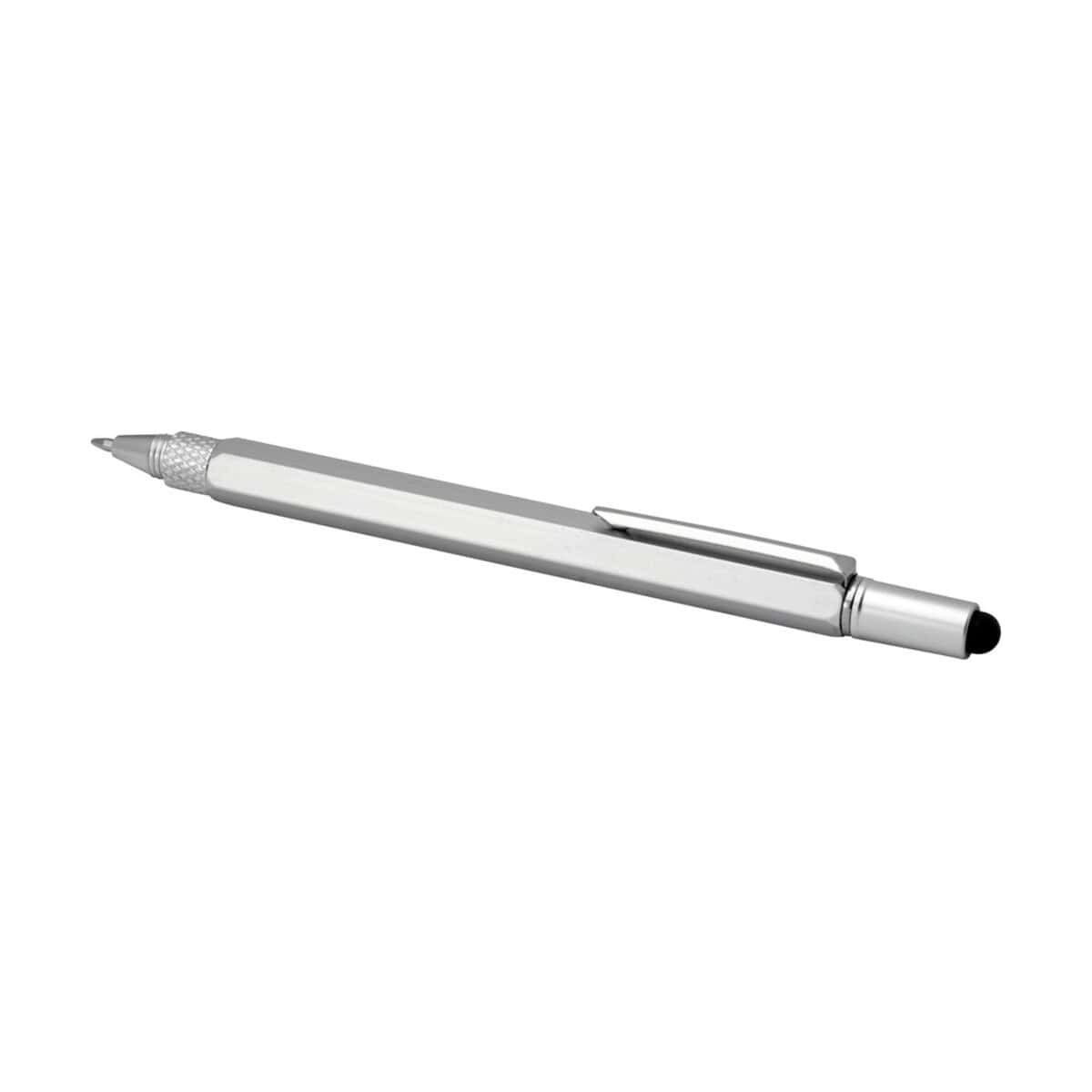 Dora wielofunkcyjny długopis z aluminium pochodzącego z recyklingu to niezwykle wszechstronny gadżet, który w jednej, smukłej obudowie łączy aż sześć przydatnych funkcji. Lekki korpus z Recycled Aluminium o wadze zaledwie 22 g został pokryty elegancką, srebrną powłoką natryskową, dzięki czemu długopis prezentuje się prestiżowo zarówno w biurze, jak i w terenie. Z jednej strony czeka na Ciebie dwustronna linijka z podziałką metryczną i calową, z drugiej – precyzyjny czarny rysik z gumy do obsługi ekranów dotykowych. W obudowie ukryto sprytną dźwignię wspomagającą pisanie, stalowy śrubokręt z wymienną końcówką oraz praktyczną podziałkę do szybkich pomiarów. Czarny tusz o żywotności 400 m i grubości 1,0 mm gwarantuje wyraźną, płynną kreskę, a solidny klips z żelaza pozwala bezpiecznie zaczepić artykuł o kieszeń lub notes 😉