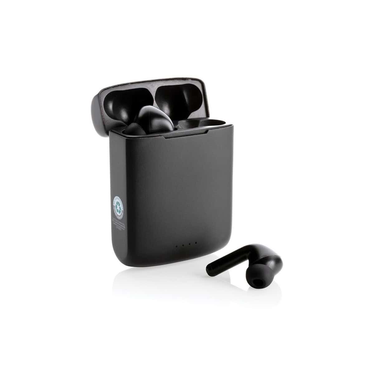 Produkt trafia do klienta w eleganckim pudełku z papieru kraftowego z certyfikatem FSC® mix, a w zestawie znajdziesz kabel TPE z recyklingu. To znakomity pomysł na gadżet reklamowy – na matowej, czarnej powierzchni bez trudu umieścisz wyraziste logo czy kreatywny nadruk, które zbudują świadomość marki. Douszne słuchawki bezprzewodowe z panelem słonecznym Skywave sprawdzą się w kampaniach firm z branży technologicznej, energetyki odnawialnej, eko-lifestyle, sportu i fitness, a także agencji kreatywnych stawiających na innowację. Taki upominek będzie znakomity dla pracowników działających w terenie, przedstawicieli handlowych, studentów, podróżników, a także miłośników outdooru, którym zależy na mobilności i ekologii.