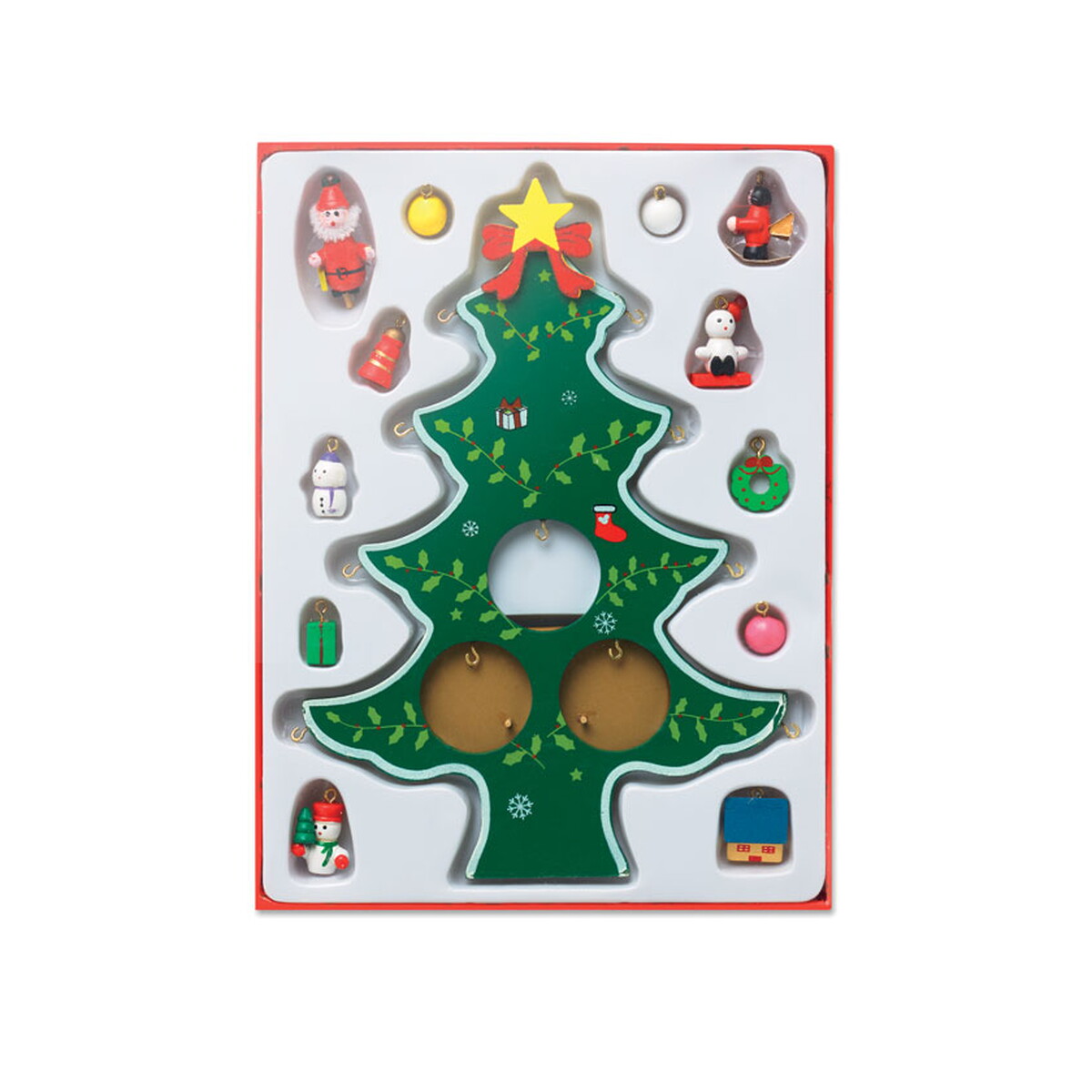 Drewniana choinka WOODTREE to świąteczny gadżet, który podbije serca klientów i współpracowników już od pierwszego spojrzenia 🎄. Wykonana z naturalnego drewna w modnym, zielonym kolorze, energooszczędna, lekka i przyjazna środowisku, stanowi doskonałe tło pod firmowe logo albo subtelny nadruk. Zestaw zawiera 12 uroczych zawieszek do samodzielnego zmontowania, co zamienia upominek w kreatywną zabawę i sprawia, że odbiorca spędza z Twoją marką jeszcze więcej czasu. Dzięki eleganckiemu pudełku z przezroczystą pokrywką drzewko prezentuje się niezwykle efektownie już przy wręczeniu – gotowe do ekspozycji na sklepowej ladzie, recepcyjnym blacie czy domowym biurku.