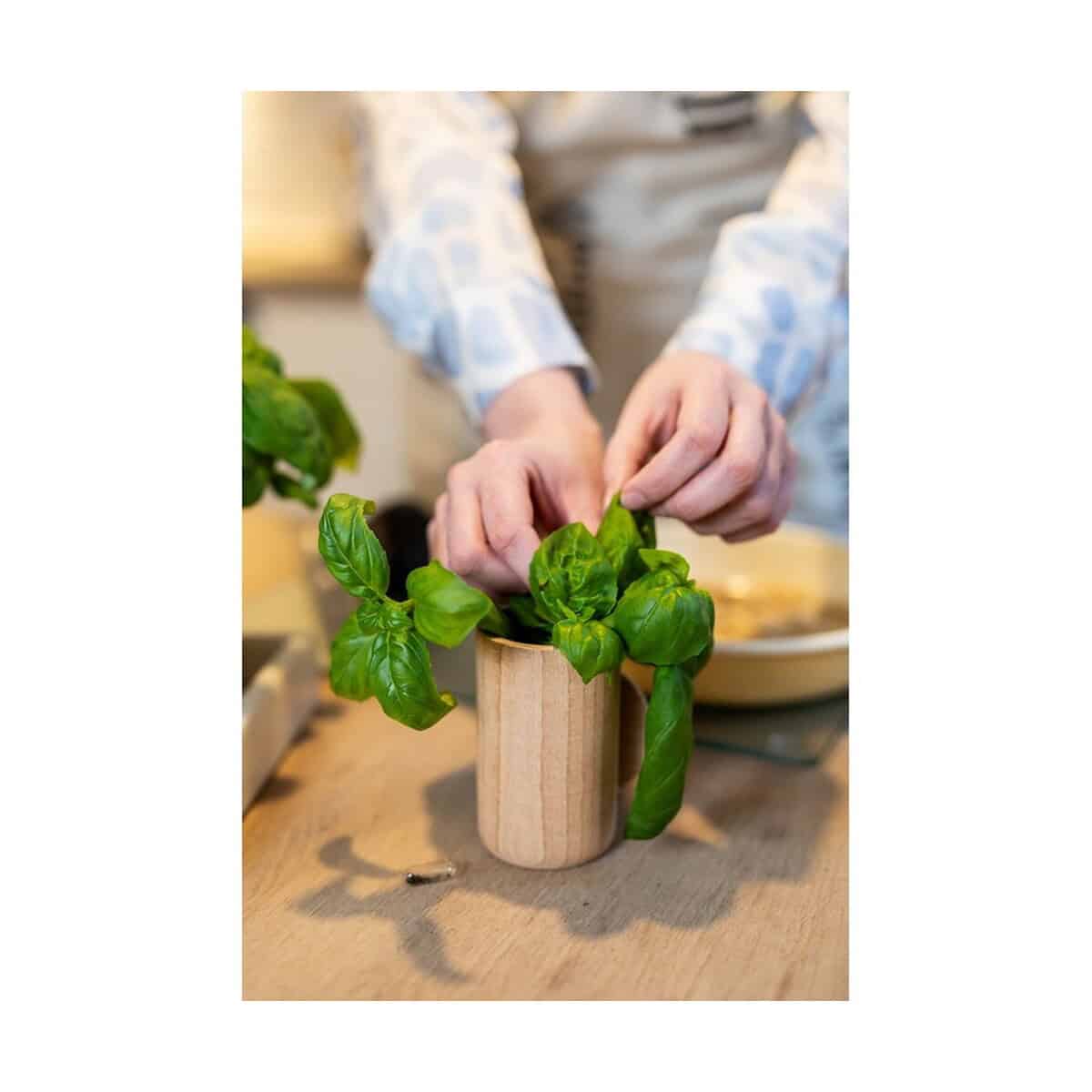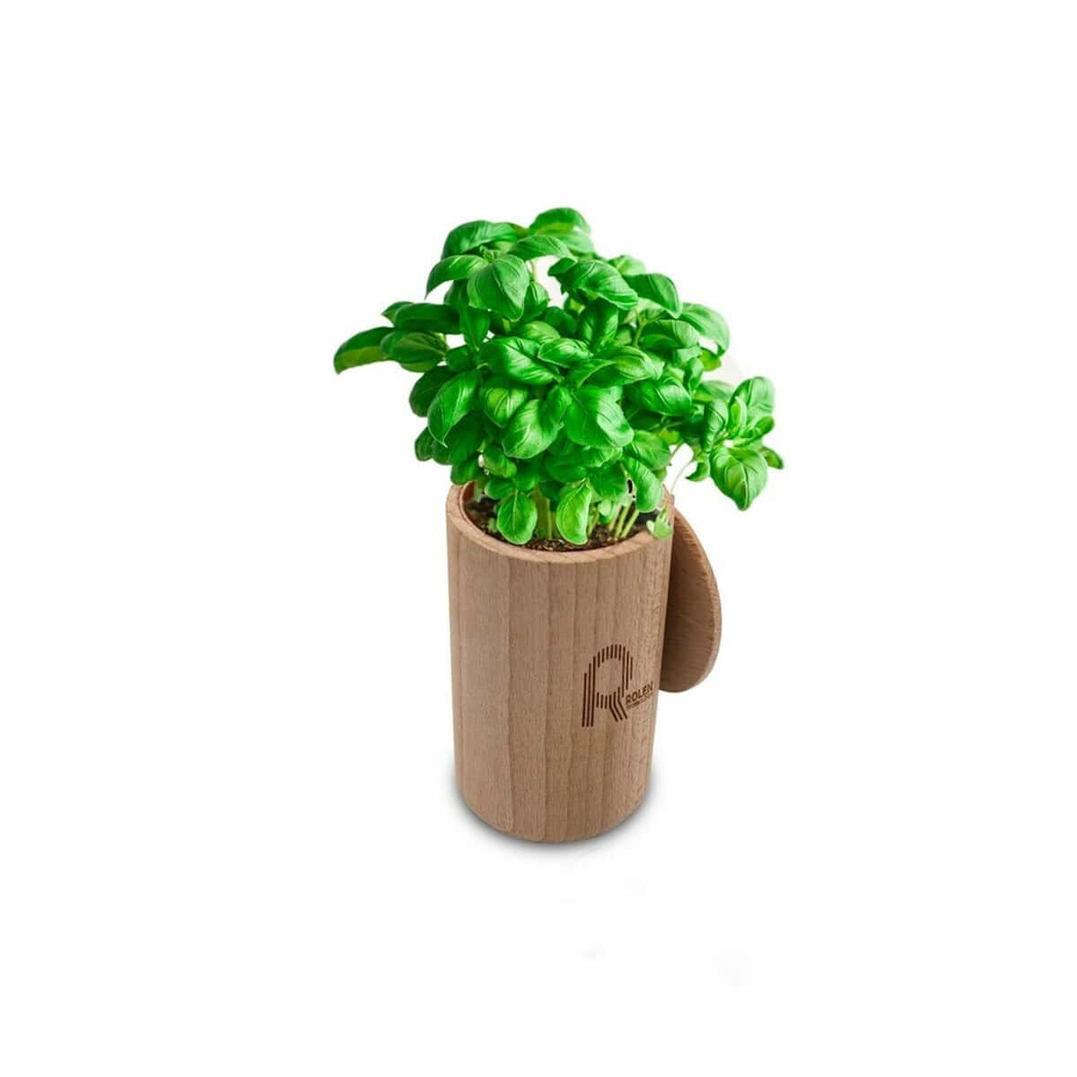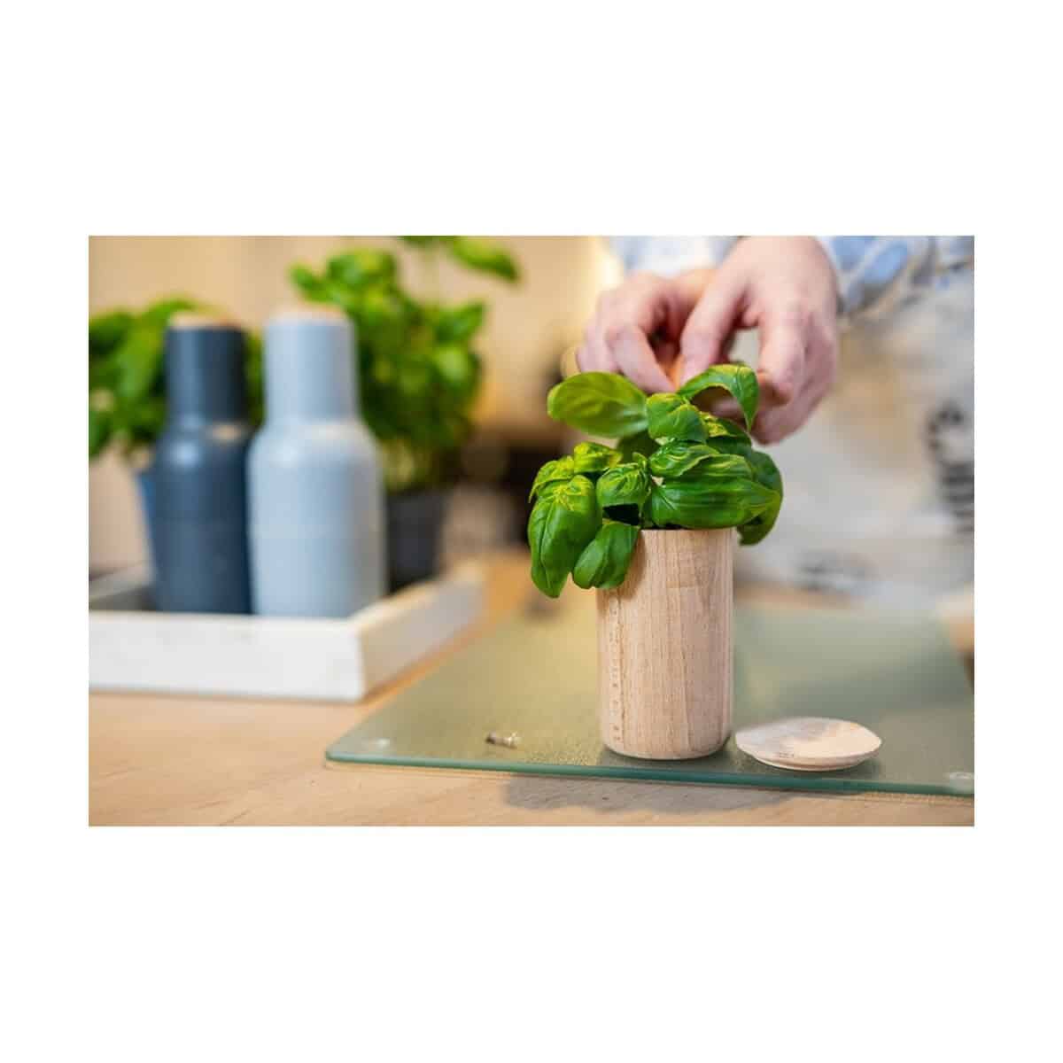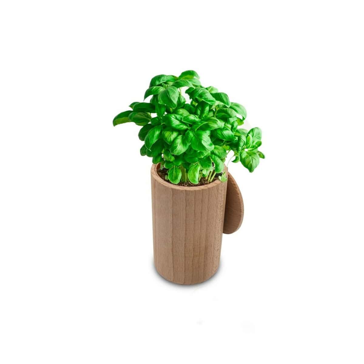 Drewniana doniczka, nasiona bazylii i ziemia | Dottie
