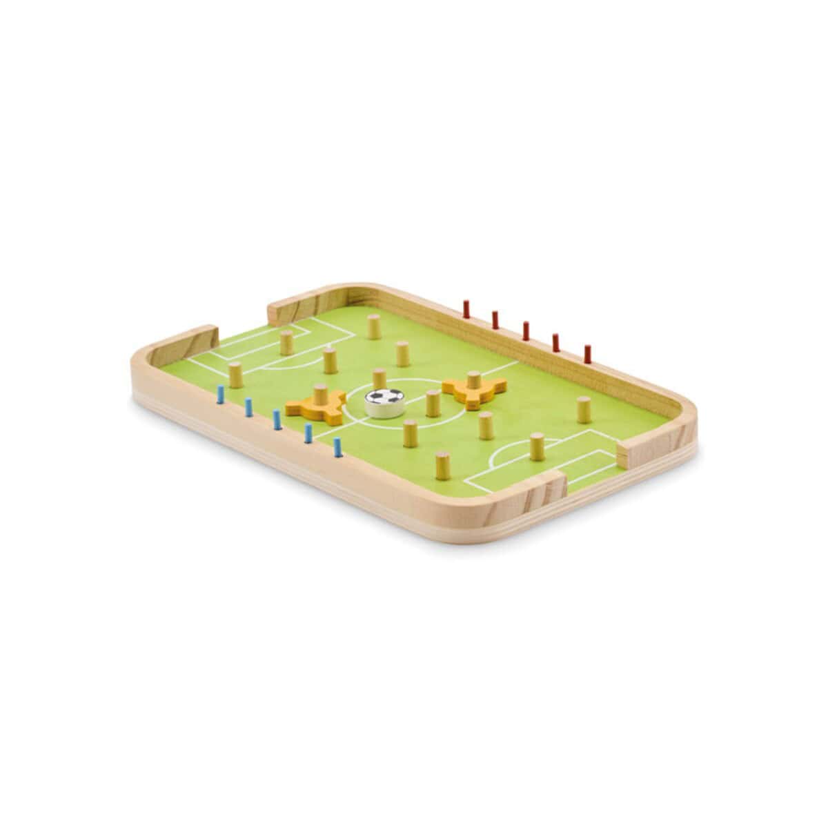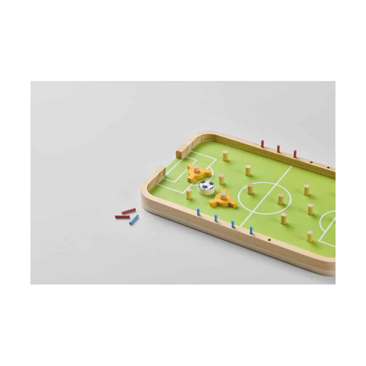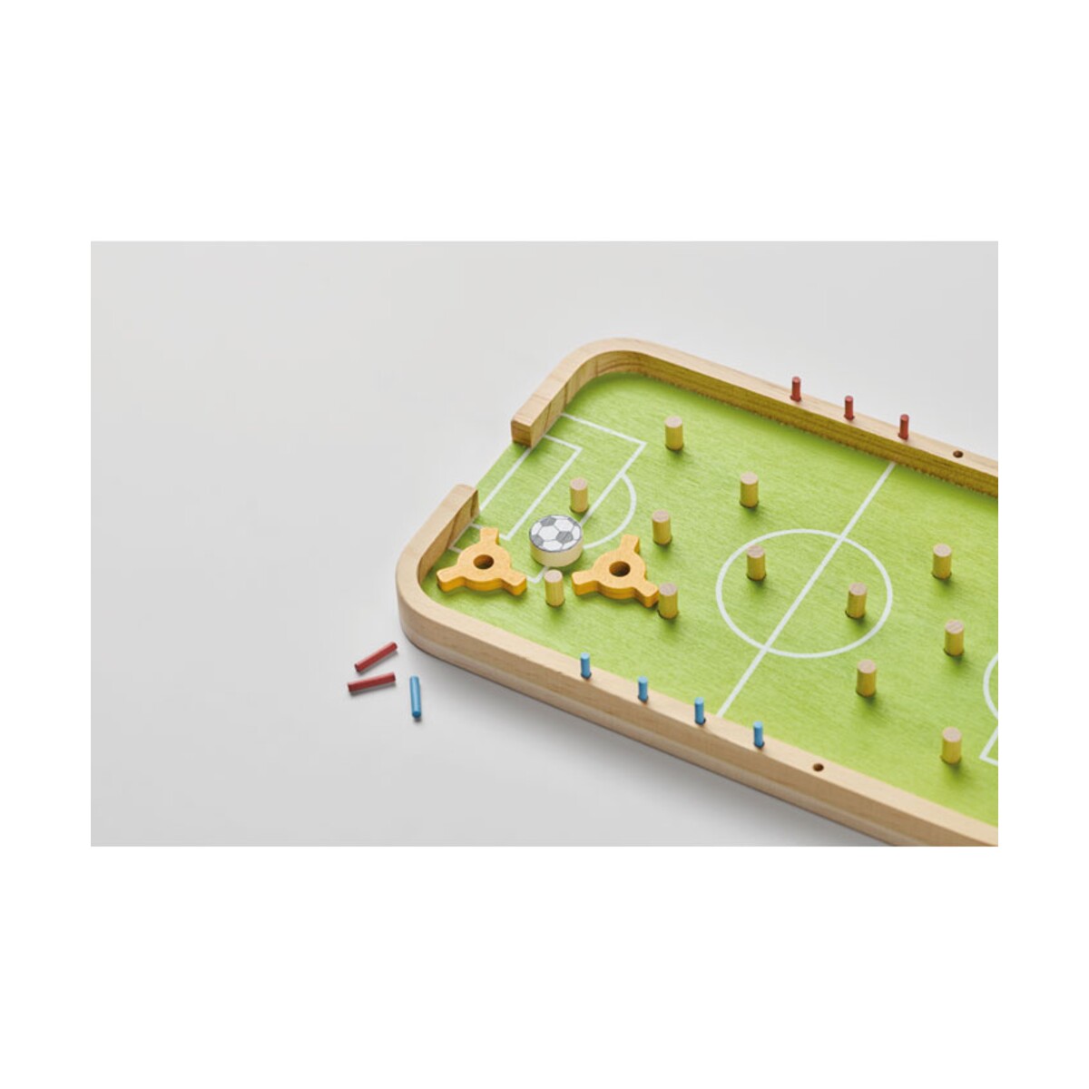 Drewniana gra w piłkę nożną BOLIN to niezwykle pomysłowy gadżet, który przeniesie atmosferę pełnego emocji meczu na każdy piknik, event czy firmowe spotkanie 😊. Wykonana w całości z naturalnego drewna, zawiera wszystko, czego potrzebujesz, aby rozegrać mini turniej: graczy, piłkę, strzelca oraz kijki do punktacji. Dzięki kompaktowym wymiarom 24 × 15 × 1,8 cm i niewielkiej wadze zaledwie 0,246 kg zabierzesz ją wszędzie – od biurowej kuchni po plażę. Jej ciepły, drewniany kolor doskonale wyeksponuje Twoje logo, a ekologiczny charakter podkreśli odpowiedzialność marki.