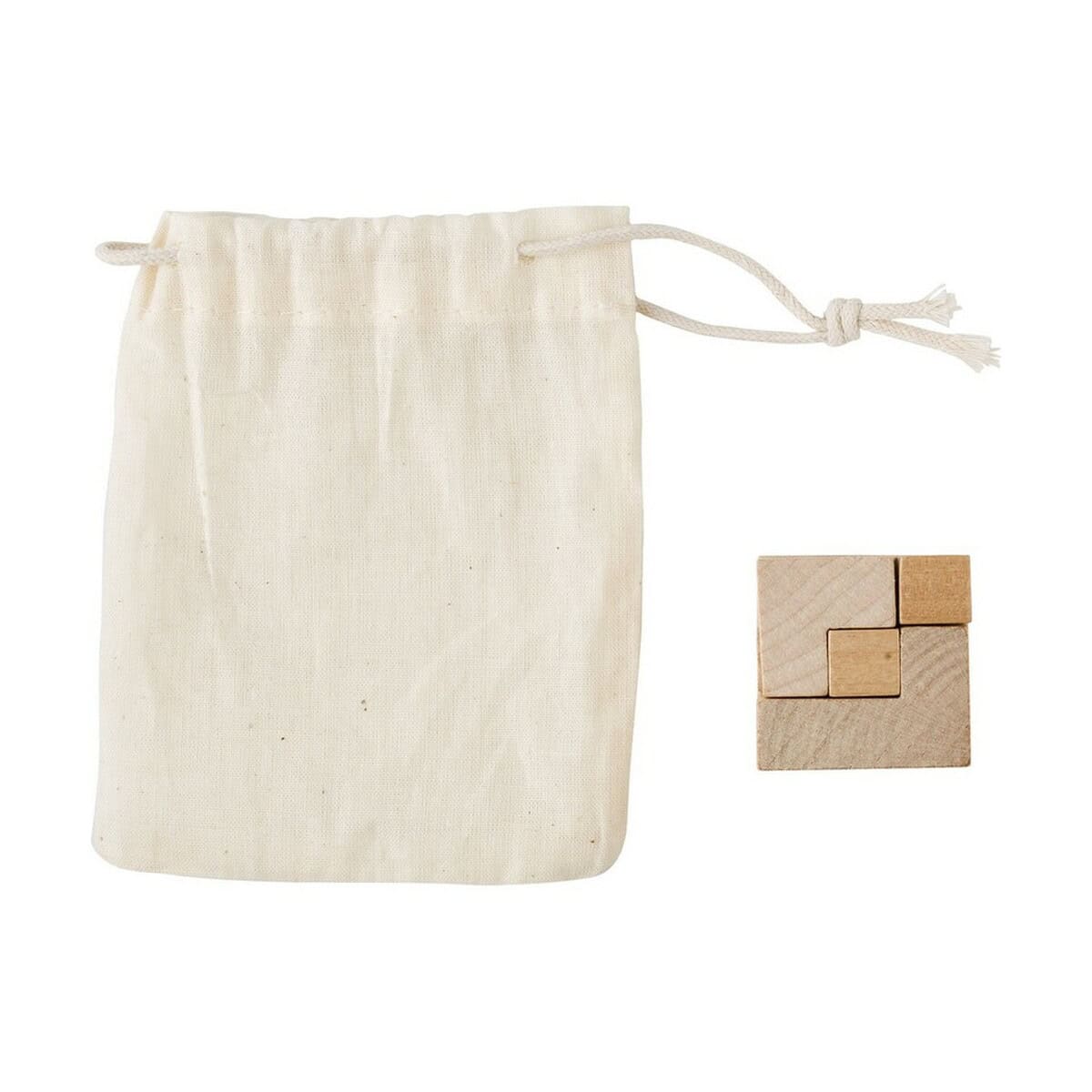 Jej kompaktowe wymiary 4,5 x 4,5 x 4,5 cm czynią z niej praktyczny gadżet promocyjny, który zmieści się nawet w kieszeni marynarki. Szlachetny materiał: drewno oraz ekologiczny woreczek z bawełny w naturalnym brązowym odcieniu podkreślają troskę o środowisko, co docenią świadomi konsumenci. Dzięki tym cechom, Drewniana gra zręcznościowa staje się atrakcyjnym nośnikiem Twojego firmowego przekazu.