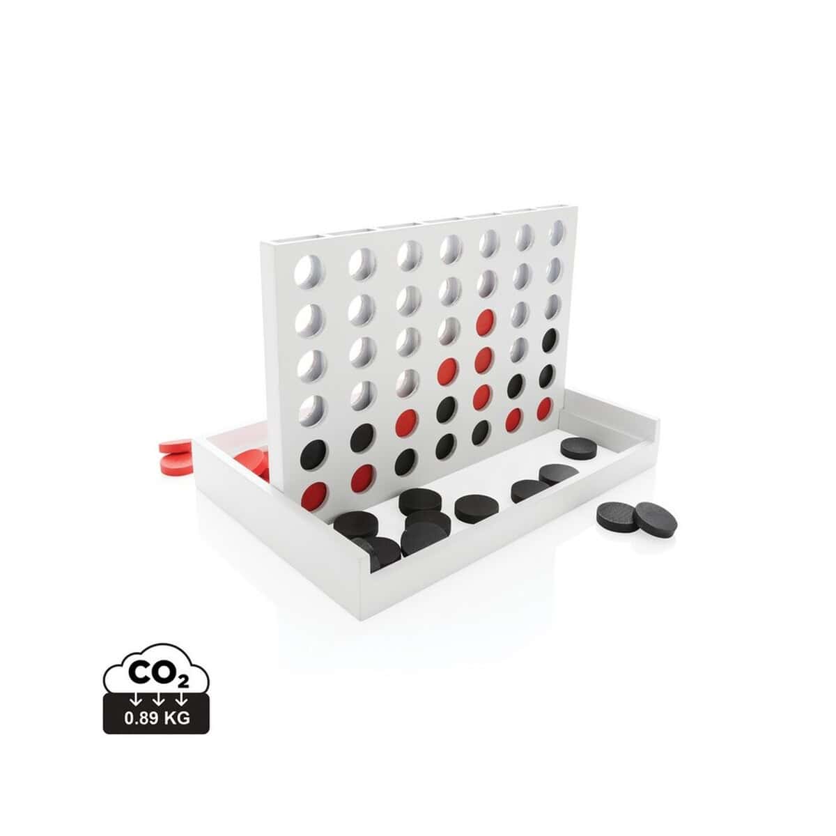 Drewniana gra zręcznościowa „połącz cztery” to klasyka w zupełnie nowym, ekologicznie świadomym wydaniu. Wykonana w całości z certyfikowanego drewna FSC®, zachwyca naturalnym białym kolorem i precyzyjnym wykończeniem. Dzięki kompaktowym wymiarom 24 x 17 x 16,5 cm łatwo zmieści się w plecaku, torbie plażowej lub firmowej szufladzie z prezentami 😊. Drewniana gra zręcznościowa „połącz cztery” przyciąga wzrok subtelnym designem, a opakowanie z papieru kraftowego FSC® podkreśla zrównoważony charakter produktu. Ślad węglowy na poziomie zaledwie 1,38 kg CO₂ to dodatkowy atut dla marek dbających o planetę.