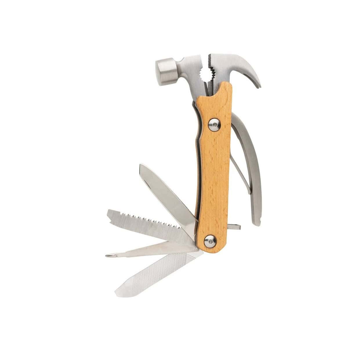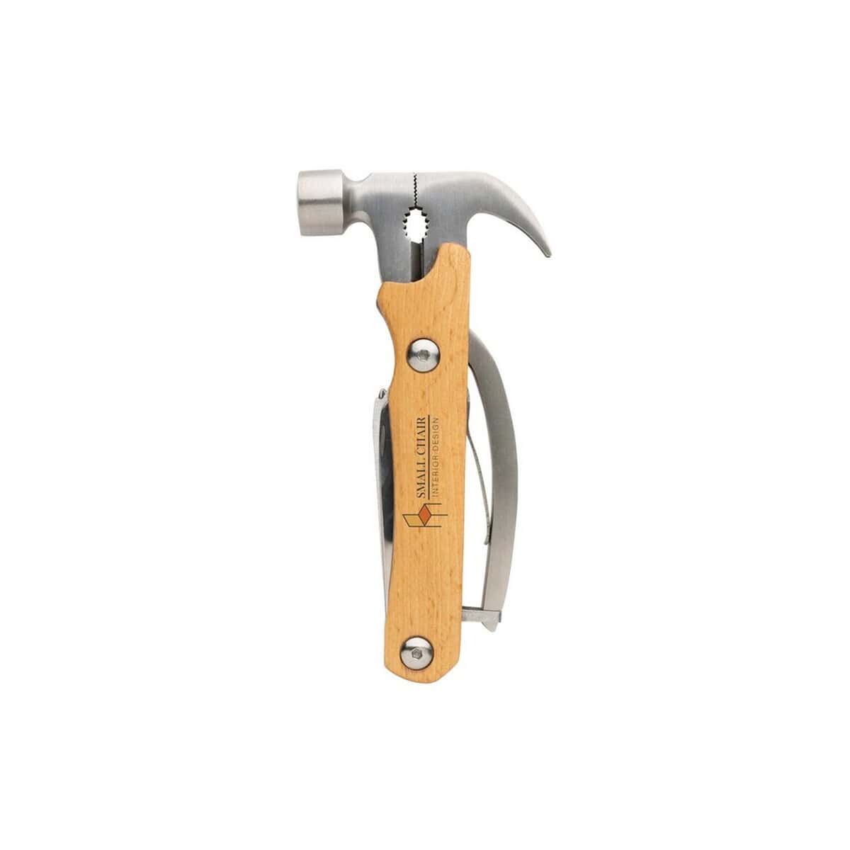 Drewniane narzędzie wielofunkcyjne „młotek” świetnie sprawdzi się w kampaniach firm z branży budowlanej, deweloperskiej, ogrodniczej, motoryzacyjnej oraz DIY. Dzięki możliwości umieszczenia logo oraz personalnego nadruku staje się ono wyjątkowo atrakcyjnym nośnikiem przekazu reklamowego – subtelnym, ale niezwykle użytecznym. Ten kompaktowy zestaw narzędzi jest po prostu znakomity dla Twojej firmy, gdy chcesz podkreślić dbałość o ekologię i wysoką jakość materiałów.