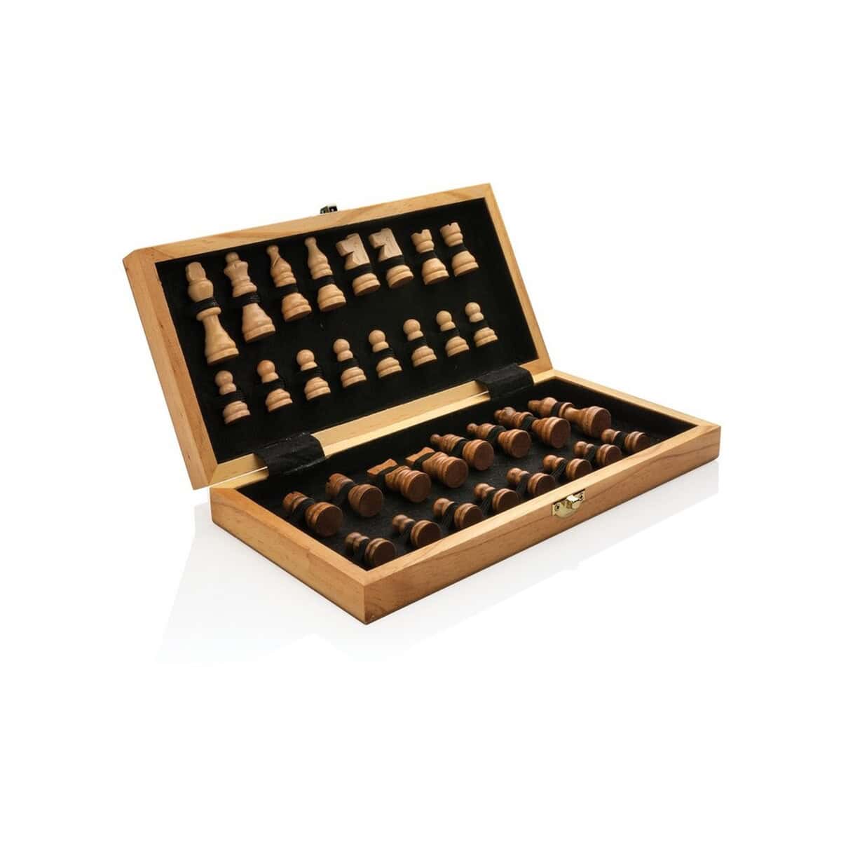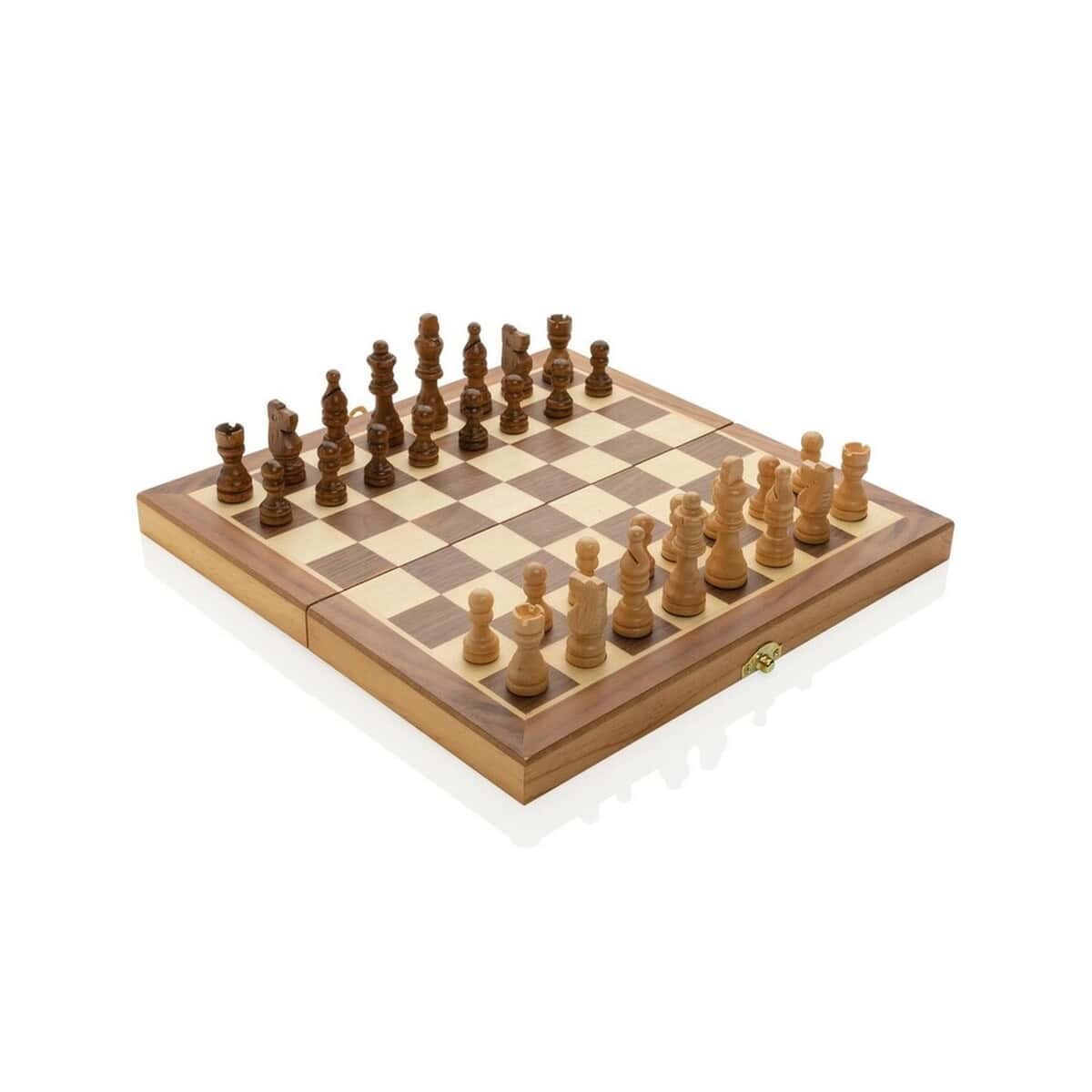 Drewniany zestaw do gry w szachy to ponadczasowy gadżet, który przenosi tradycję królewskiej gry w nowoczesny świat promocji marek. Wykonany z certyfikowanego drewna FSC® oraz MDF, o kompaktowych wymiarach 29,5 × 29,3 × 2,7 cm, zachwyca starannością wykonania i naturalnym, brązowym wybarwieniem. Składana plansza mieści komplet precyzyjnie toczonych bierek, a całość zapakowano w eleganckie pudełko upominkowe z papieru kraftowego z certyfikatem FSC® – to ekologiczny akcent, który podkreśla troskę o planetę (ślad węglowy tylko 1,87 kg CO₂) 🌿.