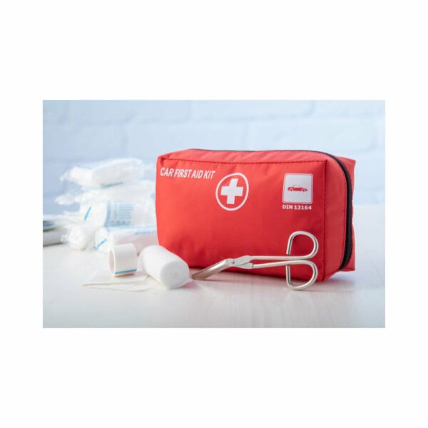 Kompletna apteczka samochodowa zgodna z normą DIN 13164 zawiera wszystko, czego potrzeba w razie wypadku drogowego. Etui zapinane na zamek zapewnia łatwy i pewny dostęp do wszystkich składników wykonanego z wytrzymałego nylonu. Zestaw zawiera nożyczki, plaster zwijany, 14 plastrów samoprzylepnych, 2 chusteczki oczyszczające, 2 bandaże trójkątne, 4 bandaże uciskowe, 3 kompresy na rany, 5 bandaży elastycznych, 2 opatrunki na oparzenia, koc ratunkowy i 2 pary rękawiczek bezlateksowych. Przygotuj się na wszystko, co może Cię spotkać na drodze, dzięki tej kompletnej, gotowej do użycia apteczce!
