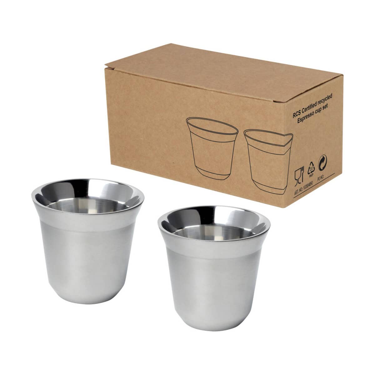 Duo zestaw filiżanek do espresso ze stali nierdzewnej z certyfikatem RCS 80 ml