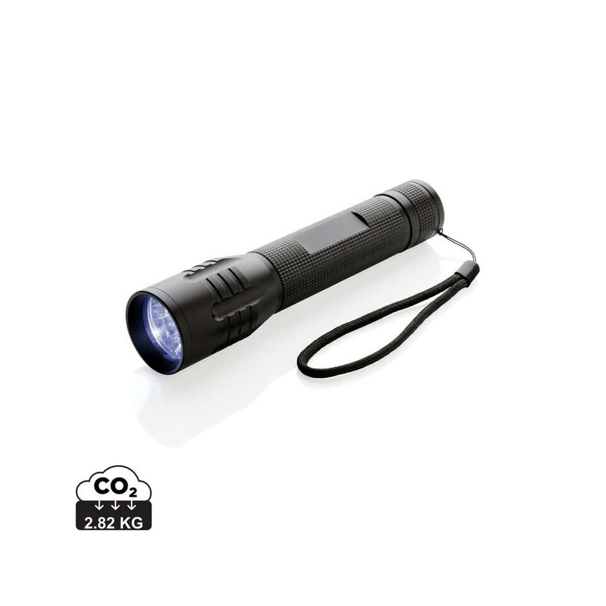 Duża latarka CREE 3W to niezawodny towarzysz każdej wyprawy, budowy czy akcji ratunkowej. Wykonana z trwałego aluminium, o kompaktowych wymiarach 17,6 x Ø3,8 cm, łączy wytrzymałość z eleganckim czarnym wykończeniem. Dzięki nowoczesnej diodzie CREE generuje bardzo jasne światło o mocy 100 lumenów, co zapewnia doskonałą widoczność nawet w najtrudniejszych warunkach. Jedno ładowanie gwarantuje czas pracy do 15 godzin, a jej ślad węglowy 2,82 kg CO₂ świadczy o odpowiedzialnym podejściu producenta do ekologii 🌿.