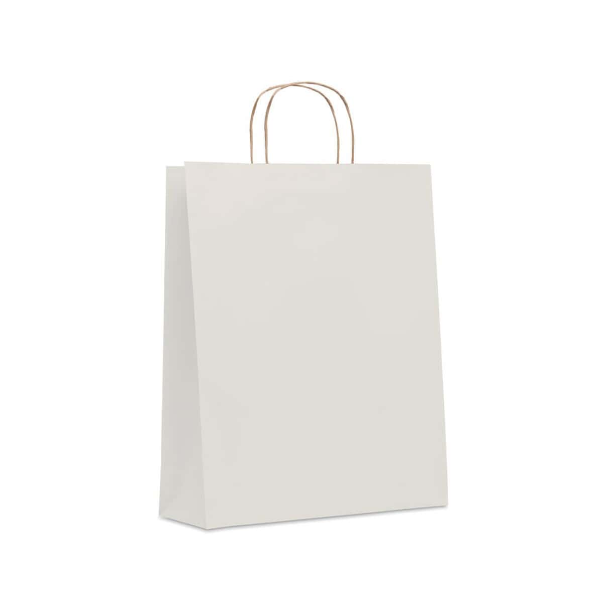 Duża papierowa torba PAPER TONE L to przyjazne środowisku, a zarazem wyjątkowo solidne rozwiązanie, które znakomicie podkreśli charakter każdej marki. Wykonana w 50% z recyklingu, o gramaturze 90 g/m², staje się doskonałym wyborem dla firm chcących podkreślić swoje eko-wartości. Dzięki sporym wymiarom 32 × 12 × 40 cm torba pomieści zarówno odzież, kosmetyki, jak i urządzenia elektroniczne, a przy tym waży zaledwie 0,056 kg, co czyni ją niezwykle wygodną w codziennym użytkowaniu. 🙂