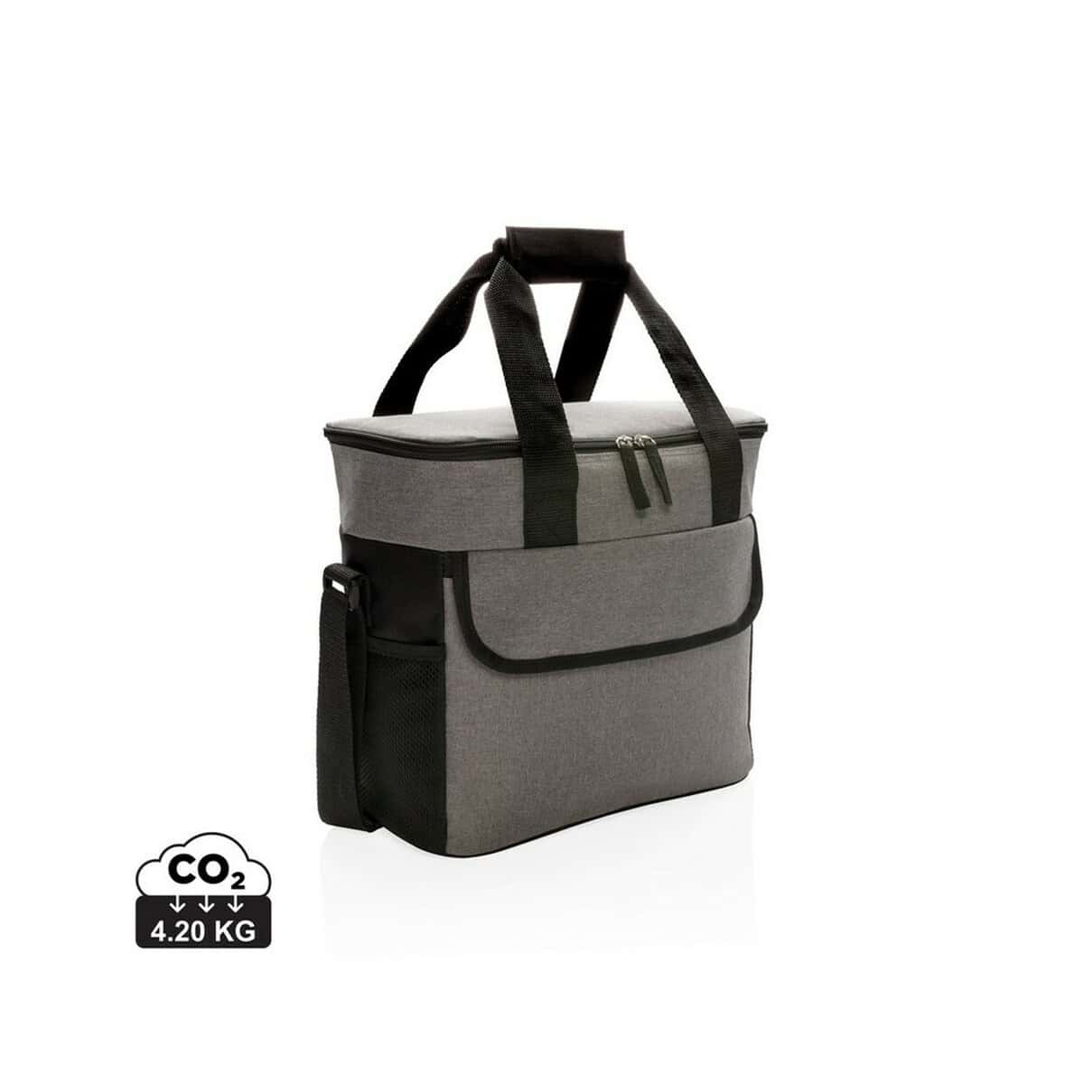 Duża torba termoizolacyjna to nieodzowny towarzysz letnich pikników, firmowych eventów czy plenerowych szkoleń. Wykonana z wytrzymałego materiału poliester 600D, zachwyca nowoczesnym, neutralnym designem w eleganckim kolorze szarym, dzięki czemu świetnie prezentuje się w każdym otoczeniu. Zewnętrzna przednia kieszeń pomieści sztućce lub serwetki, a dwie boczne kieszenie siateczkowe ułatwią szybki dostęp do napojów. Wnętrze o imponującej pojemności aż 20 puszek 0,33 l gwarantuje, że Twoje ulubione przekąski i napoje pozostaną chłodne nawet w najbardziej upalne dni 🙂