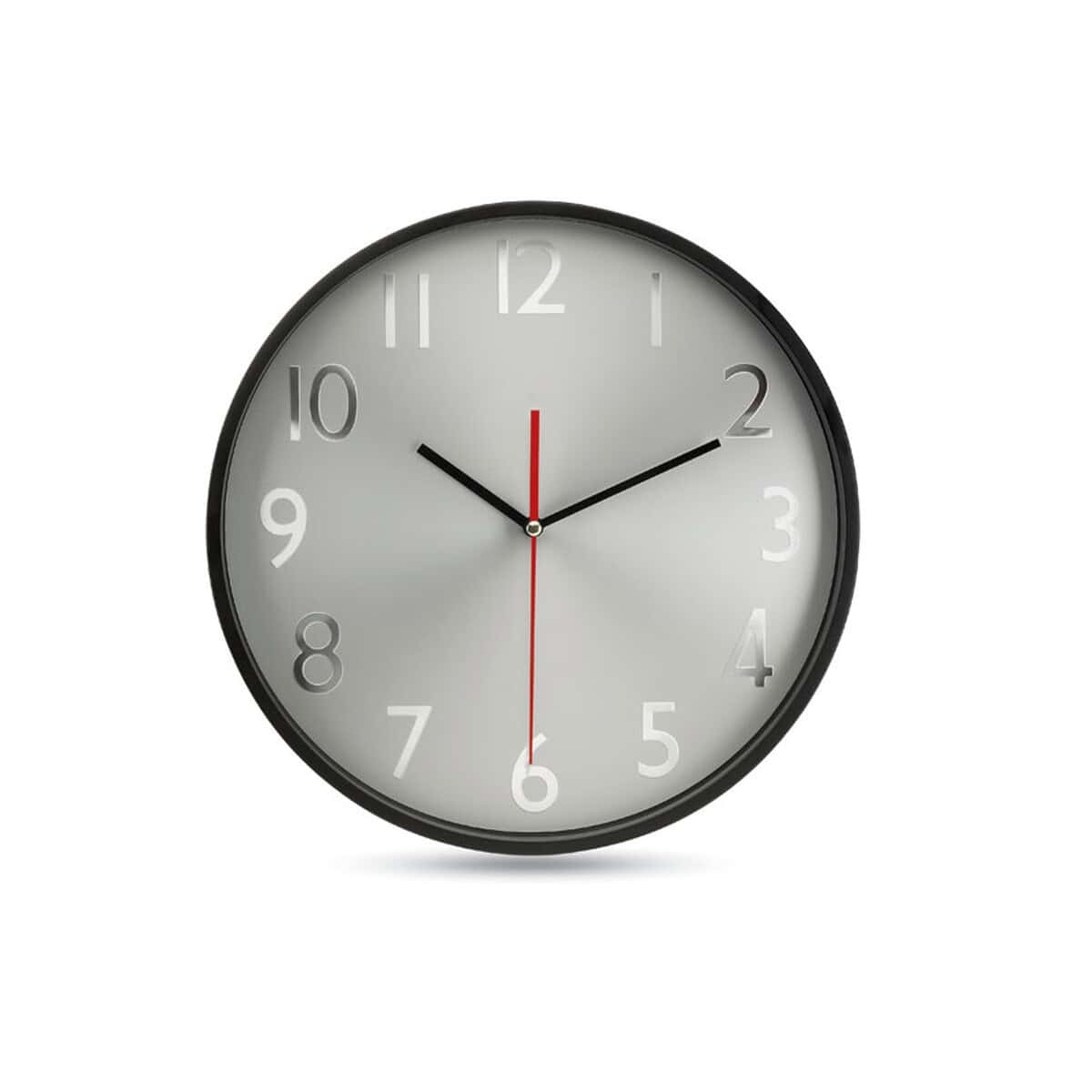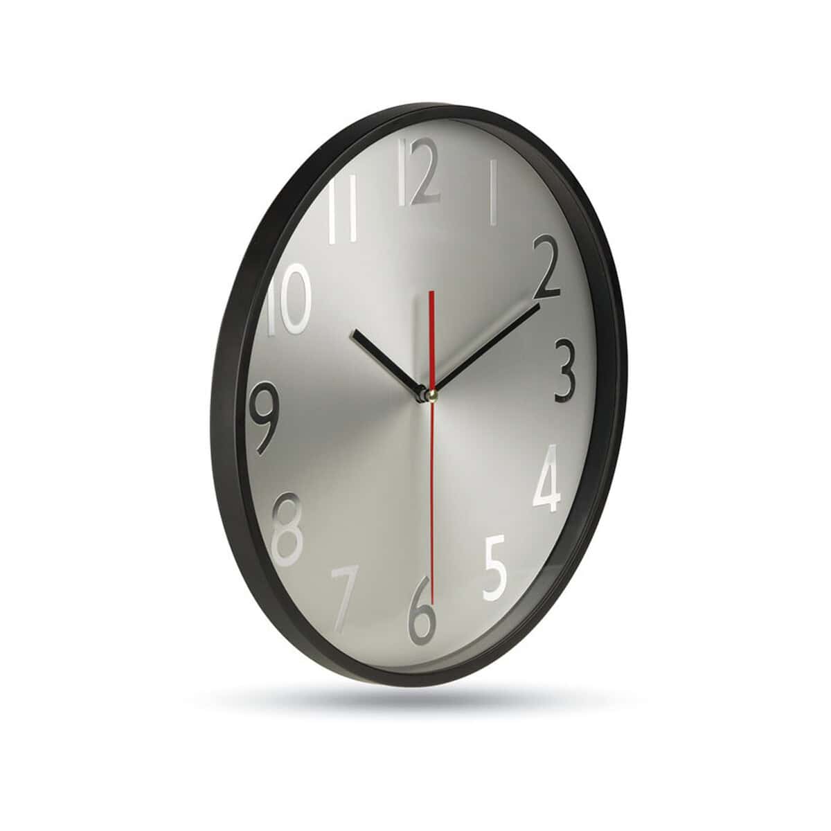 Duży zegar ścienny RONDO to prawdziwy „time-maker” 🙂 o średnicy aż 30 cm, który od pierwszej sekundy przyciąga wzrok elegancką aluminiową tarczą i minimalistycznymi czarnymi wskazówkami. Wykonany z wytrzymałego plastiku, waży jedynie 0,655 kg, więc bez trudu zawiesisz go w biurze, showroomie czy salonie sprzedaży. Brak dołączonej baterii AA pozwala swobodnie dobrać zasilanie według własnych preferencji. Świetnie sprawdzi się jako gadżet promocyjny: szeroka, gładka powierzchnia tarczy oferuje mnóstwo miejsca na precyzyjny nadruk albo eleganckie logo, co zamieni zegar w praktyczny nośnik Twojej marki.