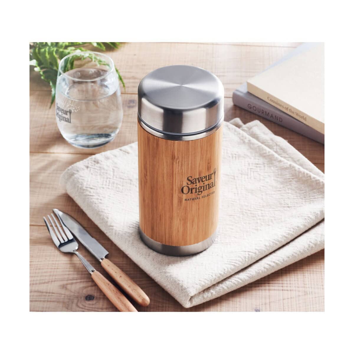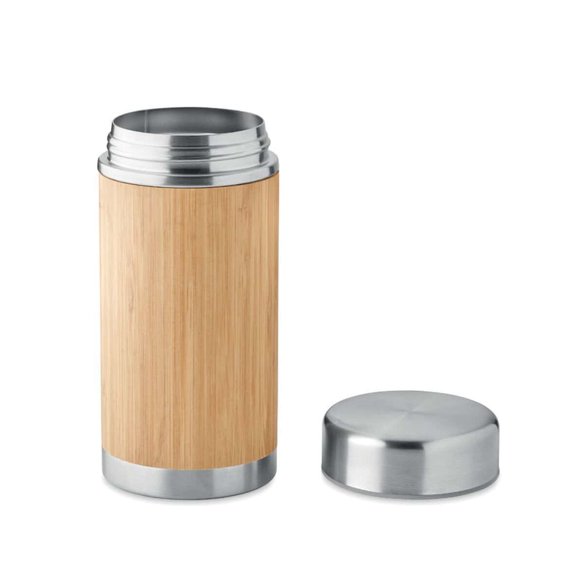 Dwuścienny pojemnik 600 ml NATUJAR to prawdziwie ekologiczny gadżet, który zachwyci każdego miłośnika zdrowego stylu życia 😊. Wykonany z podwójnej ścianki ze stali nierdzewnej oraz wykończony naturalnym bambusem, utrzymuje temperaturę posiłków przez długie godziny, a jednocześnie prezentuje się stylowo i nowocześnie. Pojemność 600 ml, wymiary ø8,5 × 19 cm i waga 550 g sprawiają, że zmieści się w torbie, plecaku czy samochodowym uchwycie na kubek. Dzięki neutralnej, drewnianej barwie oraz minimalistycznej formie doskonale wyeksponujesz firmowe logo albo wyrazisty nadruk, czyniąc z pojemnika praktyczny upominek reklamowy – widoczny każdego dnia. Naturalny bambus może nieznacznie różnić się odcieniem i usłojeniem, co nadaje każdemu egzemplarzowi unikalny charakter.
