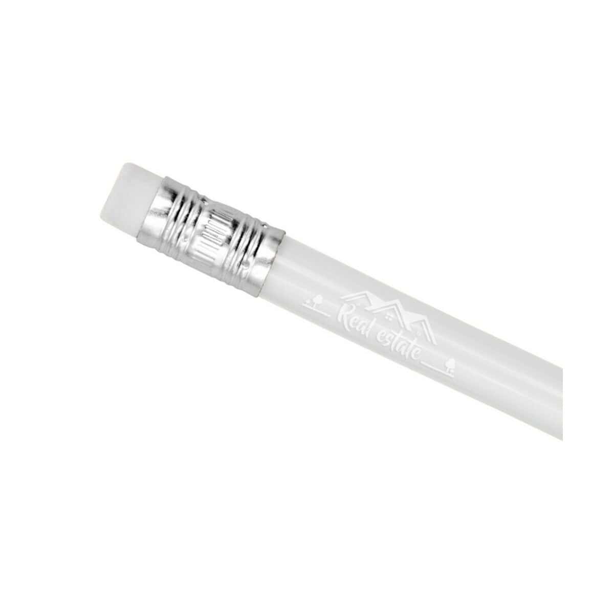 Produkt jest lekki – waży jedynie 12 g, a jego imponująca długość 30 cm (średnica Ø0,6 cm) czyni go bardziej widocznym i wygodnym w promowaniu logo. Wykonanie z trwałego pvc zapewnia mu elastyczność i wyższą odporność na złamanie niż klasyczne drewniane odpowiedniki, a dopasowana kolorystycznie gumka ułatwia poprawki. Końcówka nie jest zaostrzona, więc Ty lub Twoi klienci możecie zdecydować, jaki kształt grafitu będzie najodpowiedniejszy.