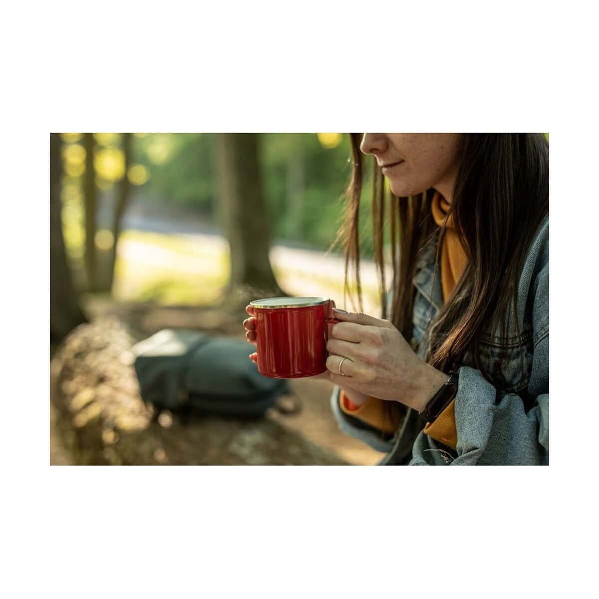 Emaliowany kubek 360 ml | Taeris to rozwiązanie doskonałe dla firm organizujących targi, kiermasze i festiwale food trucków. Zamknięte w nim napoje zachowują temperaturę, a metal nie pochłania aromatów, dzięki czemu kawa czy herbata smakują wybornie. Znakomicie nadaje się też do serwowania zup kremów lub deserów na piknikach firmowych. Ten kubek będzie najkorzystniejszy dla marek chcących podkreślić zamiłowanie do tradycji, ekologii i outdooru.