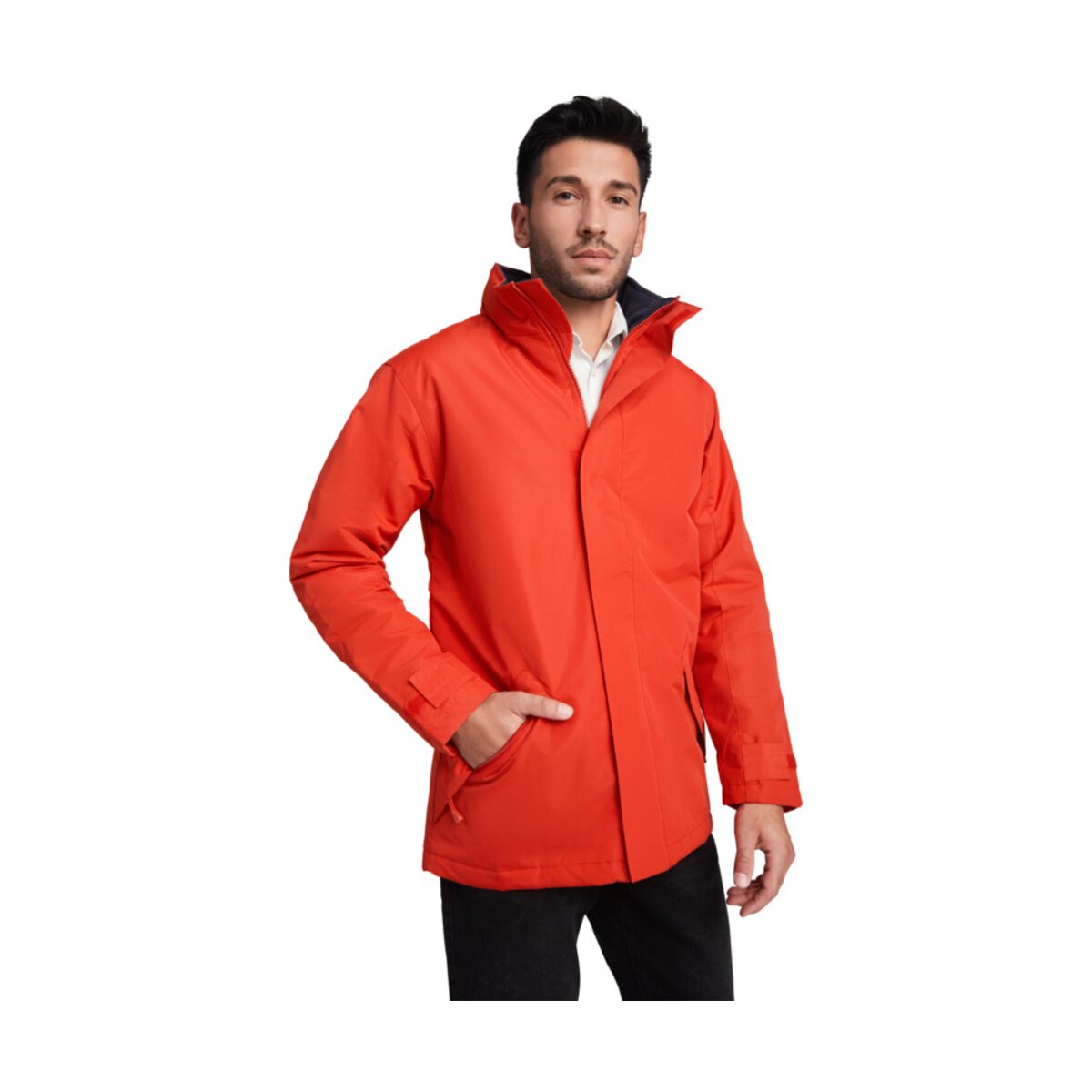 Ocieplana kurtka wodoodporna. Centralny zamek błyskawiczny z dopasowaną klapką. Wysoki kołnierz ze zwijanym kapturem. Kieszenie boczne z zamkiem błyskawicznym i klapką. Regulowane mankiety z paskami. Dwie wewnętrzne kieszenie zapinane na rzep. Wewnętrzny zamek błyskawiczny z dekoracją. Dostępne rozmiary dziecięce. Wodoodporna. Wiatroszczelna.