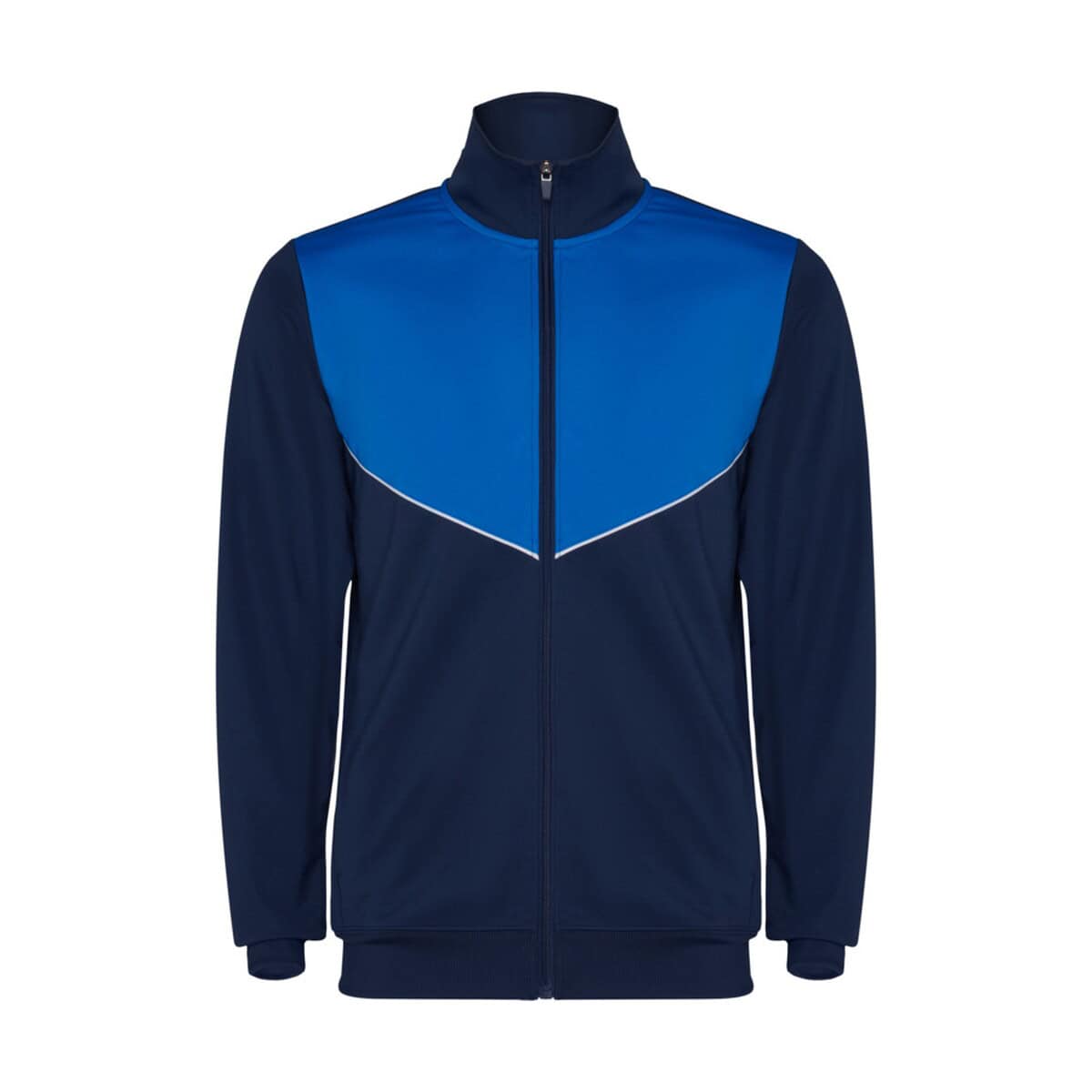 Kurtka została uszyta z lekkiej dzianiny Interlock 100% poliester o gramaturze 225 g/m², a cały komplet waży jedynie 444 g, co gwarantuje wyjątkową wygodę podczas biegania, tańczenia czy treningów piłkarskich. Kontrastowe przeszycia na klatce piersiowej oraz wysoki kołnierz z zamkiem błyskawicznym nadają sportowego charakteru, a elastyczne ściągacze 2×2 w mankietach i pasie dbają o perfekcyjne dopasowanie. Spodnie wyposażono w gumkę w pasie z regulującym sznurkiem, boczny panel wykończony lamówką i praktyczny zamek na dole nogawek, co ułatwia zakładanie butów. Paleta barw obejmuje dynamiczny niebieski, uniwersalną czerń oraz elegancką biel, więc łatwo dobierzesz kolor współgrający z identyfikacją wizualną marki.