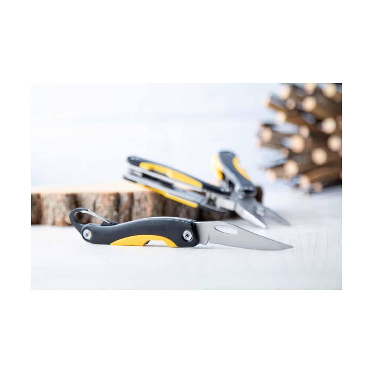 Dzięki płaskim powierzchniom obudowy, Factory zestaw narzędzi znakomicie nadaje się na nośnik firmowego logo lub precyzyjny nadruk, tworząc wyrazisty upominek reklamowy. To idealne wsparcie kampanii w branży budowlanej, motoryzacyjnej, rowerowej, outdoorowej czy logistycznej – wszędzie tam, gdzie liczy się niezawodność i mobilność. Wielofunkcyjne narzędzie w kolorze czarnym lub żółtym może towarzyszyć klientom podczas pracy w terenie, wypraw survivalowych, a także w domowym warsztacie, przypominając o Twojej marce przy każdym użyciu 🔧.