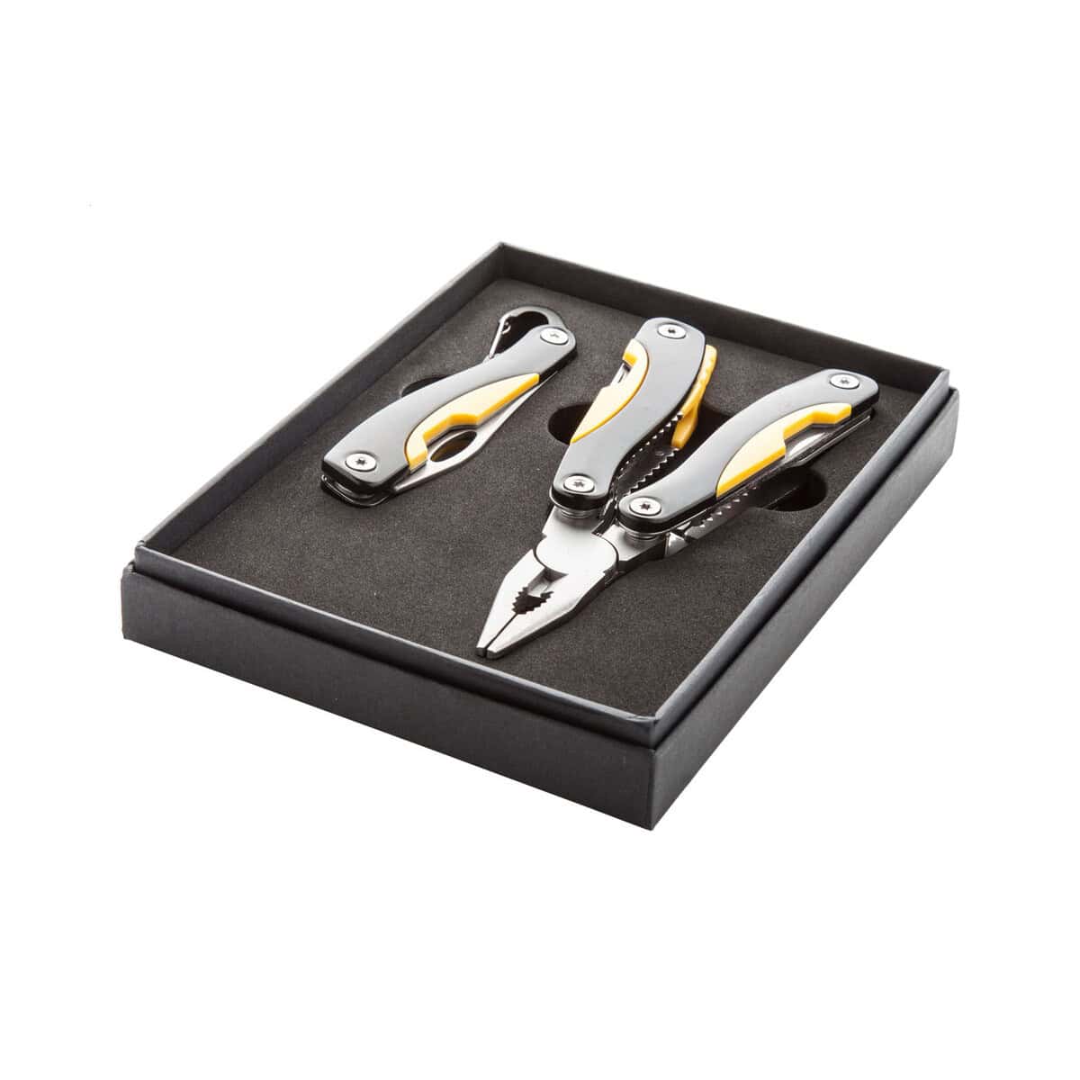 Factory zestaw narzędzi to wszechstronny, kompaktowy i niezwykle praktyczny gadżet, który doda mocy każdej akcji promocyjnej 😊. W czarnym, eleganckim etui kryje się aż 8 funkcji – m.in. nóż kieszonkowy, otwieracz, piła, śrubokręty i pilnik – wykonanych z odpornej na korozję stali nierdzewnej, wzmocnionej lekkim, anodowanym aluminium. Jego dopracowane wymiary 138×180×27 mm oraz optymalna waga 394 g sprawiają, że narzędzie świetnie leży w dłoni i zmieści się w każdym plecaku czy schowku samochodowym.
