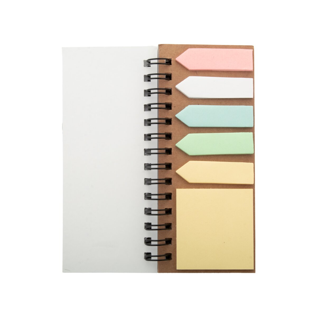 W notesie zamieszczone są także 25 samoprzylepnych karteczek oraz 125 zakładek w 5 różnych kolorach, które pomagają w organizacji pracy i szybkim odnalezieniu ważnych informacji. Wymiary produktu (61×130×15 mm) czynią go wygodnym w transporcie, a także łatwym do umieszczenia w każdej torbie czy plecaku.