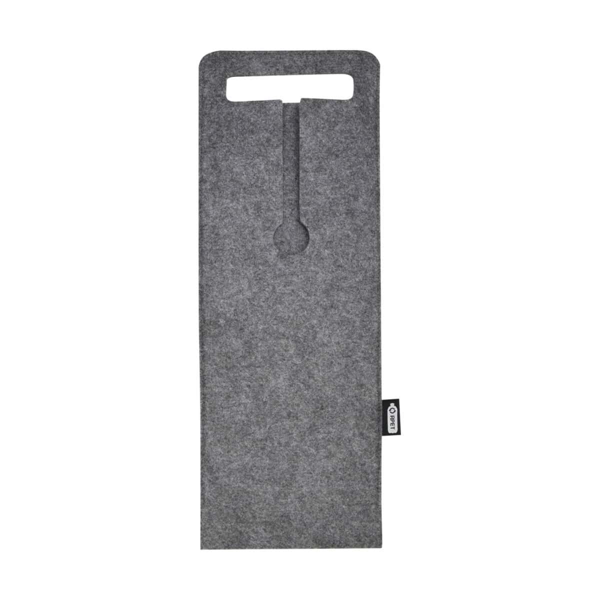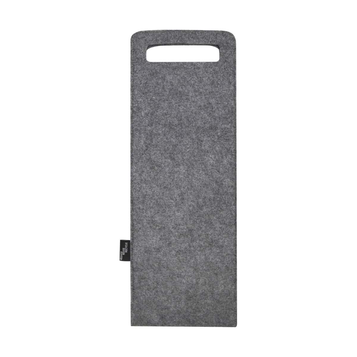 Felta filcowa torba na wino o pojemności 75 cl wykonana z materiałów z recyklingu z certyfikatem GRS to nowoczesny, a zarazem elegancki gadżet, który pozwoli podkreślić zielone wartości marki i wyróżnić się w oczach klientów. Wykonana z miękkiego, lecz wyjątkowo wytrzymałego filcu z certyfikatem GRS, zachwyca minimalistycznym designem i wyraźnym, smukłym kształtem. Wymiary: 15 x 42 cm sprawiają, że idealnie mieści standardową butelkę 0,75 l, a całkowita waga: 50 g czyni ją lekką niczym piórko. Dzięki wygodnym uchwytom transport jest komfortowy, a neutralny kolor: szary stanowi doskonałe tło pod firmowe logo lub dekoracyjny nadruk 🎁.