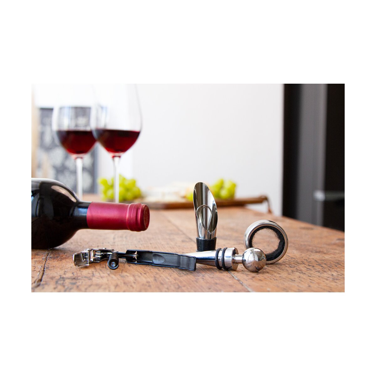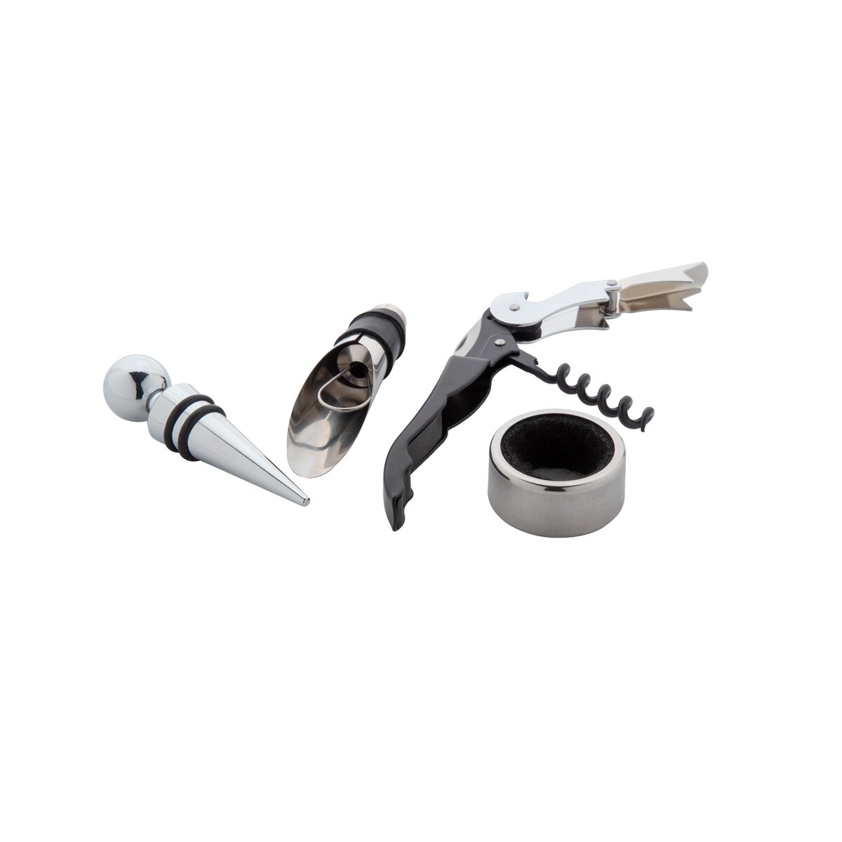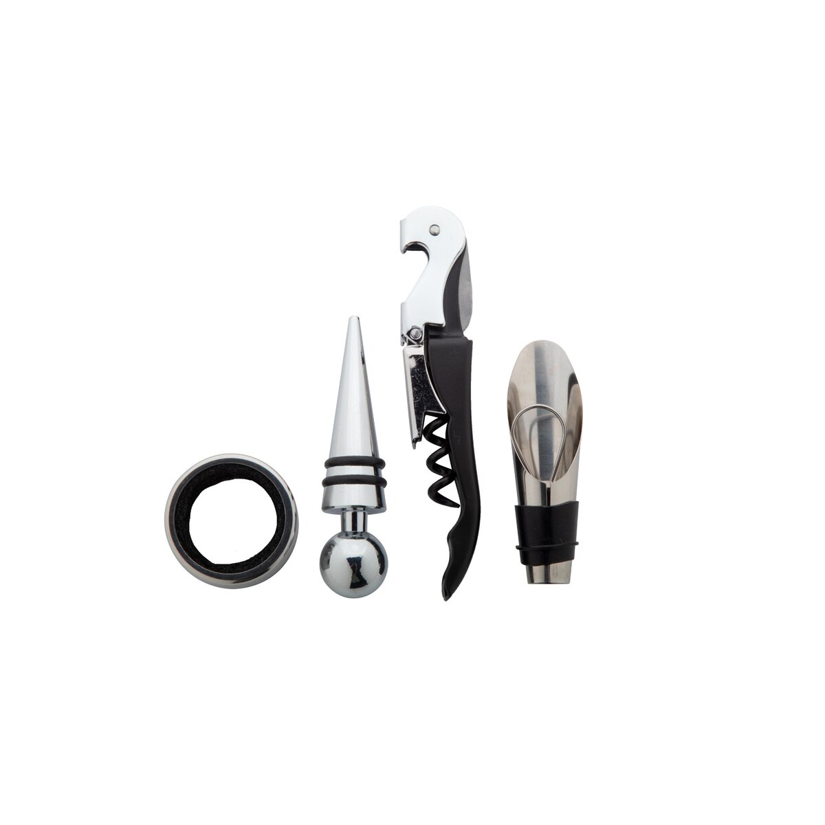 Zaprezentuj swoją klasę i elegancję z Fiano zestawem do wina, który stanowi nie tylko praktyczne narzędzie, ale również stylowy element dekoracyjny. Wykonany z wysokiej jakości stali nierdzewnej zestaw zapewnia trwałość i estetyczny wygląd, a jego ekologiczne opakowanie w formie książki wykonane z papieru kraft z recyklingu podkreśla troskę o środowisko. W skład zestawu wchodzą: korkociąg, ociekacz, lejek oraz zatyczka, które umożliwiają eleganckie otwieranie, nalewanie i przechowywanie wina.
