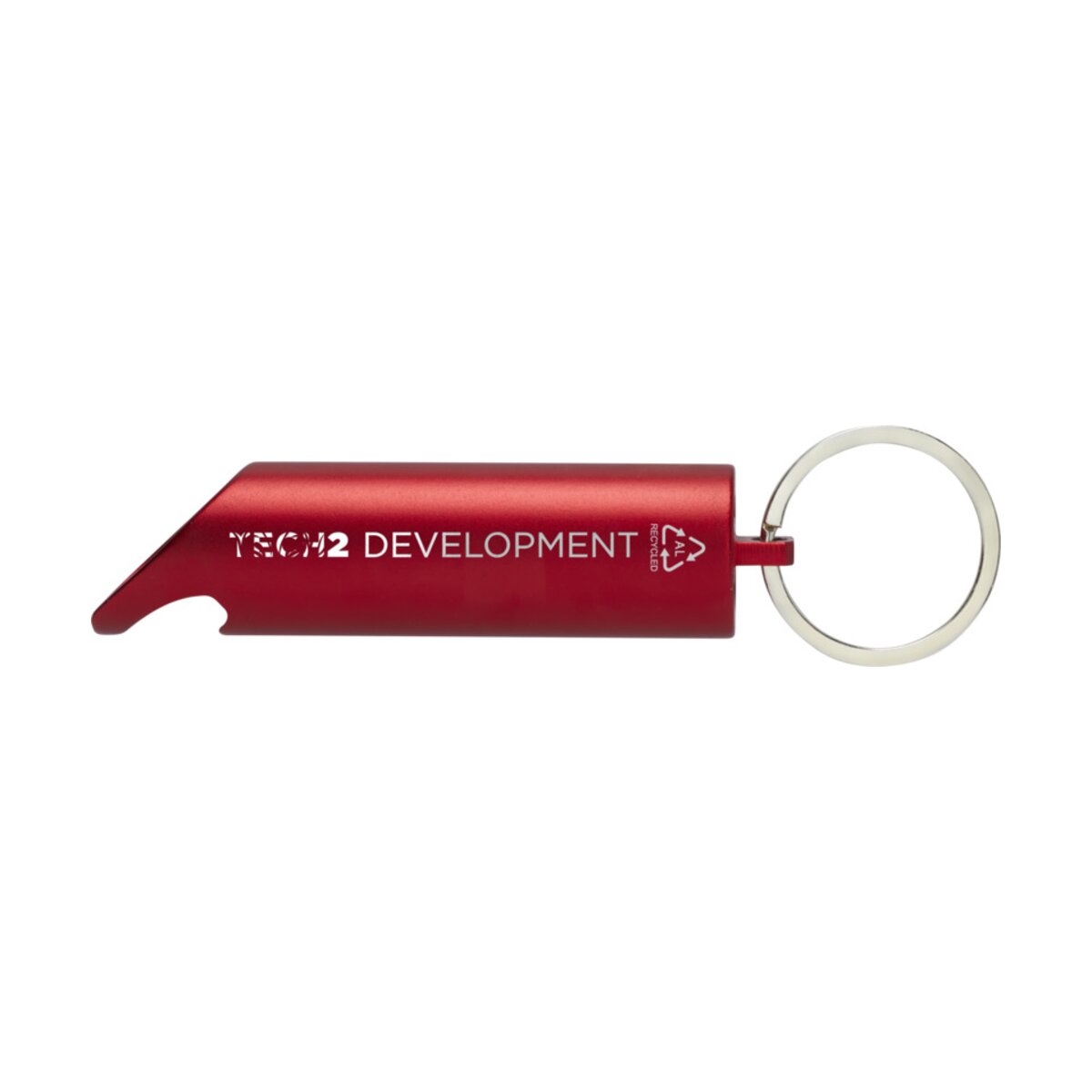 Jasna latarka LED z otwieraczem do butelek, przyciskiem włączania/wyłączania i żelaznym kółkiem na klucze. Wykonana z lekkiego i wytrzymałego aluminium z certyfikatem RCS pochodzącego w 63% z recyklingu. Recycled Claim Standard (RCS) weryfikuje zawartość surowców wtórnych w produkcie w całym łańcuchu dostaw. Dostępny w różnych efektownych kolorach z metalicznym wykończeniem, ładnie podkreślających drukowane logo. Dostarczane z trzema bateriami LR44 w zestawie.