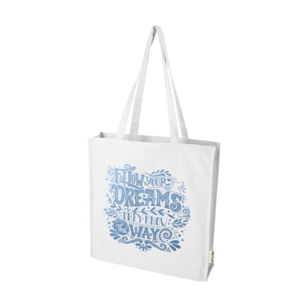 Wykonana z myślą o ekologii i funkcjonalności, Florida torba na zakupy 270 g/m² z dnem 14L jest doskonałym wyborem dla tych, którzy cenią sobie trwałość i styl. Materiał, z którego wykonana jest torba, czyli bawełna z recyklingu o gramaturze 270 g/m², posiada certyfikat GRS, co potwierdza jej wysoki standard ekologiczny.