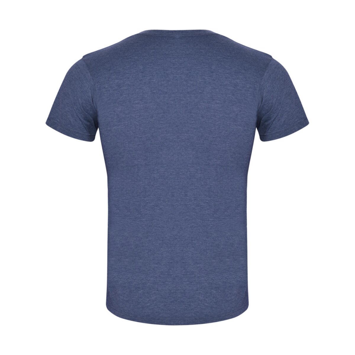 T-shirt z krótkim rękawem i efektem melanżu. Okrągły dekolt wykończony ściągaczem 1×1 z wewnętrznymi wzmocnionymi szwami. Materiał rurkowy. Usuwalna etykieta.
