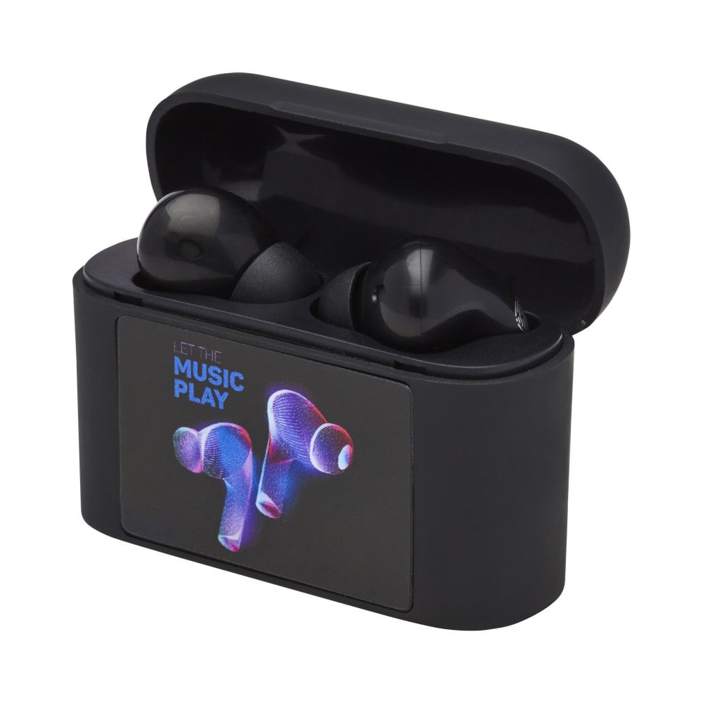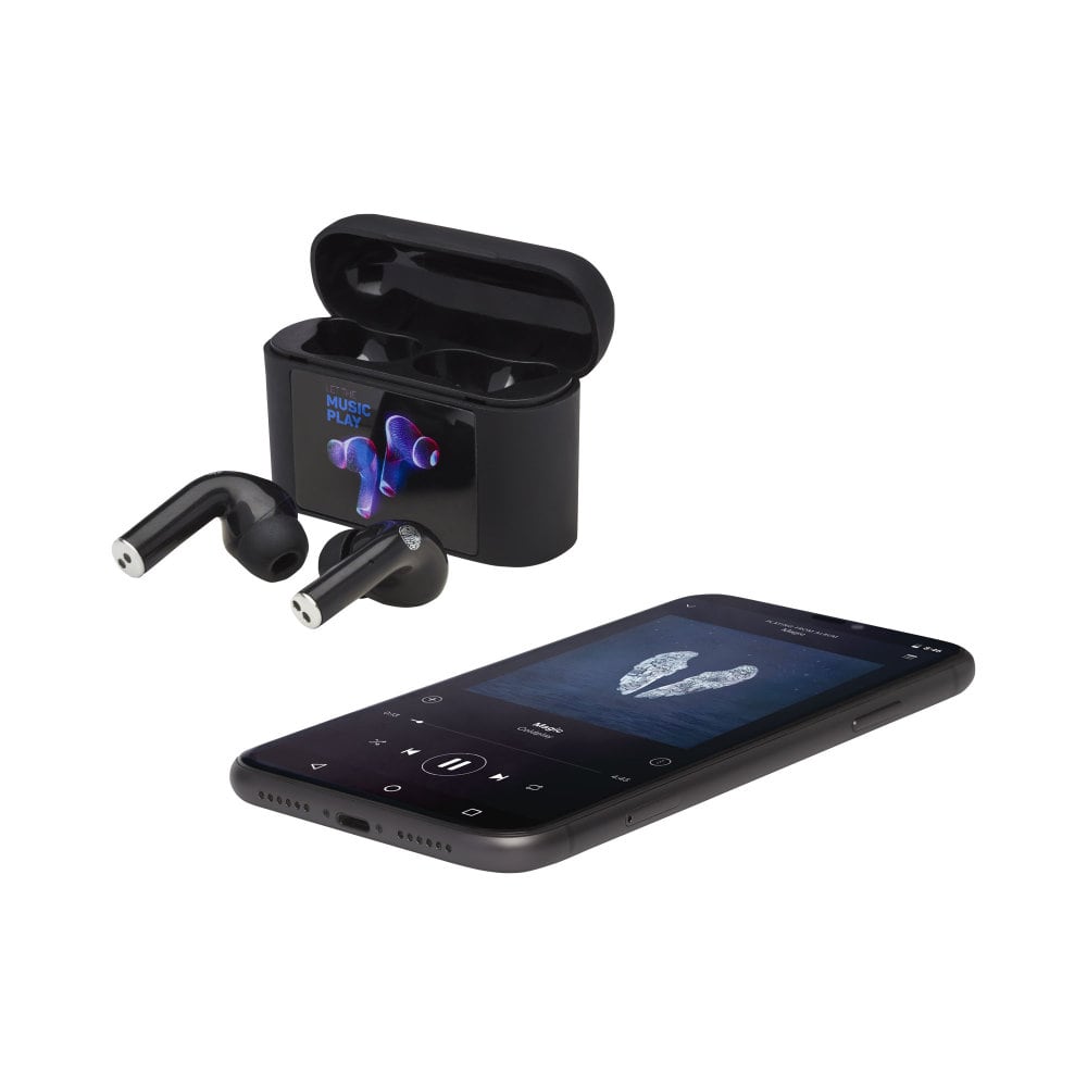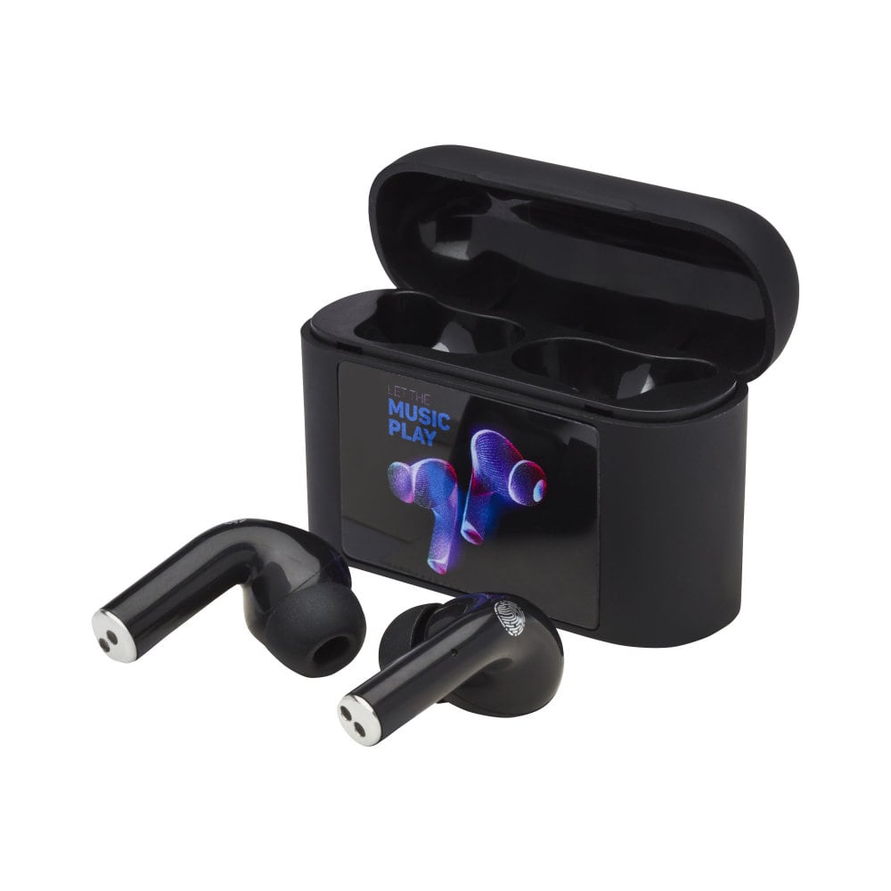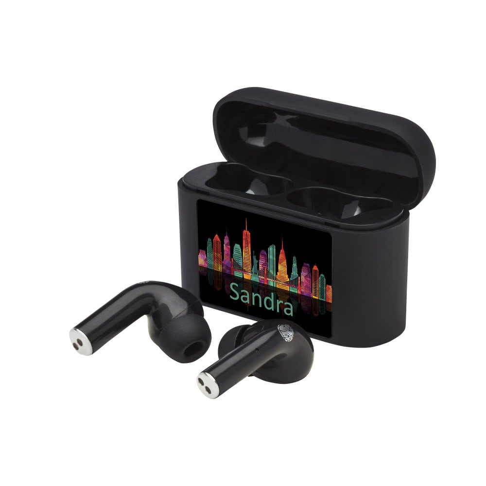 Te bezprzewodowe słuchawki douszne są wyposażone w funkcję automatycznego parowania, a ich powierzchnia jest pokryta hartowanym szkłem. Słuchawki wykorzystują technologię Bluetooth® 5.0, zapewniając stabilne połączenie. Czas odtwarzania wynosi do 4 godzin przy maksymalnej głośności, a dzięki kapsule zasilającej o pojemności 500 mAh można je naładować co najmniej 5 razy. Wbudowany wielofunkcyjny przycisk służy do aktywacji asystenta głosowego, a także do poręcznego sterowania odtwarzaniem/ pauzą/ odbieraniem/ rozłączaniem/ odrzucaniem/ kolejnym utworem/ poprzednim utworem. Dodatkowo, są one sprzedawane w ozdobnym pudełku upominkowym.