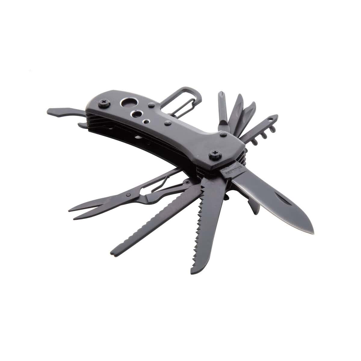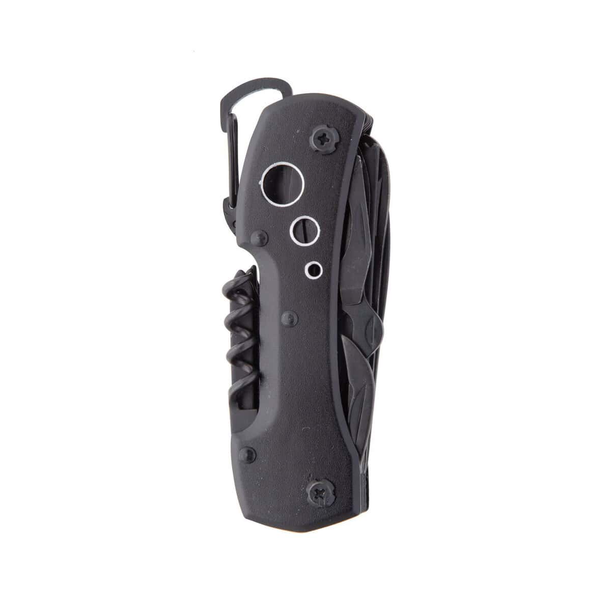 Galloway scyzoryk to prawdziwie uniwersalny gadżet, który sprawdzi się zarówno w codziennym użytkowaniu, jak i w kampaniach promocyjnych dla Twojej firmy. Jego całkowicie czarny, matowy design przyciąga wzrok i podkreśla profesjonalny charakter, a 13 praktycznych funkcji – od ostrza, przez otwieracz do butelek, po śrubokręt i karabińczyk – czynią z niego znakomity upominek dla klientów z branży outdoor, logistycznej, motoryzacyjnej czy budowlanej. Dodaj na rękojeści własne logo lub precyzyjny nadruk, a reklamowy przekaz będzie towarzyszył użytkownikowi podczas każdej wyprawy, biwaku czy prac serwisowych. 😊