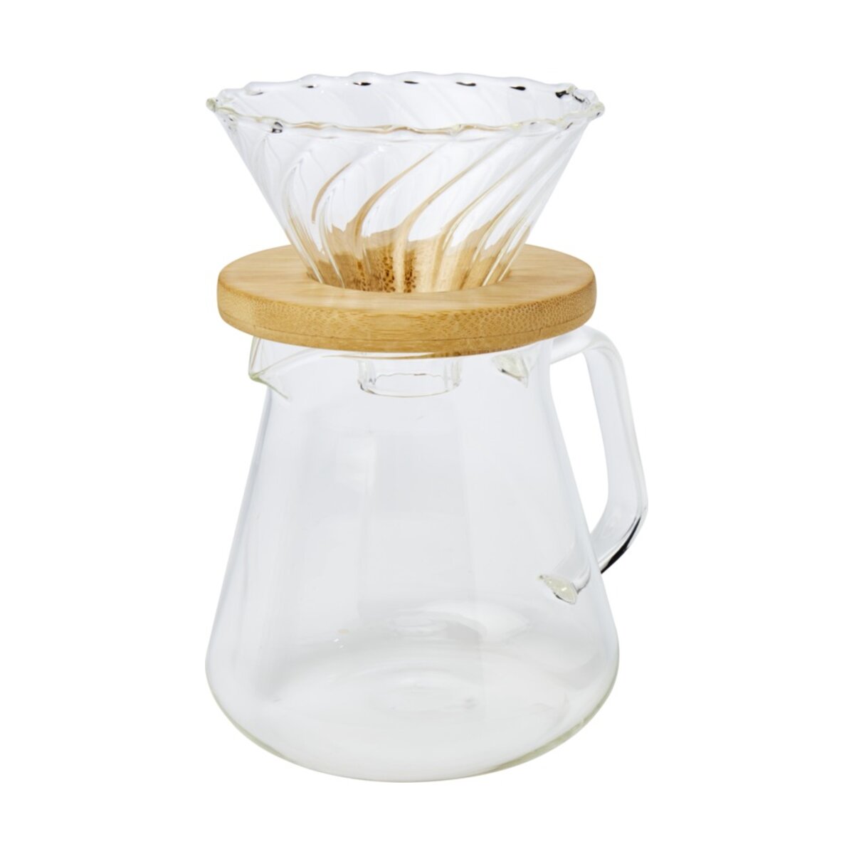 Nasz ekspres do kawy z szkła to idealne rozwiązanie dla wszystkich miłośników kawy. Wykonana z wysokiej jakości szkła butelka jest odporna na wysokie temperatury i zapewnia odpowiednie zabezpieczenie podczas przechowywania. Ten produkt ma pojemność 500 ml i jest wyposażony w oddzielny, wygodny filtr. Można go używać z bibułą filtracyjną. Uchwyt wykonany jest z bambusa, pochodzącego ze zrównoważonych, ekologicznych i społecznie odpowiedzialnych źródeł.
