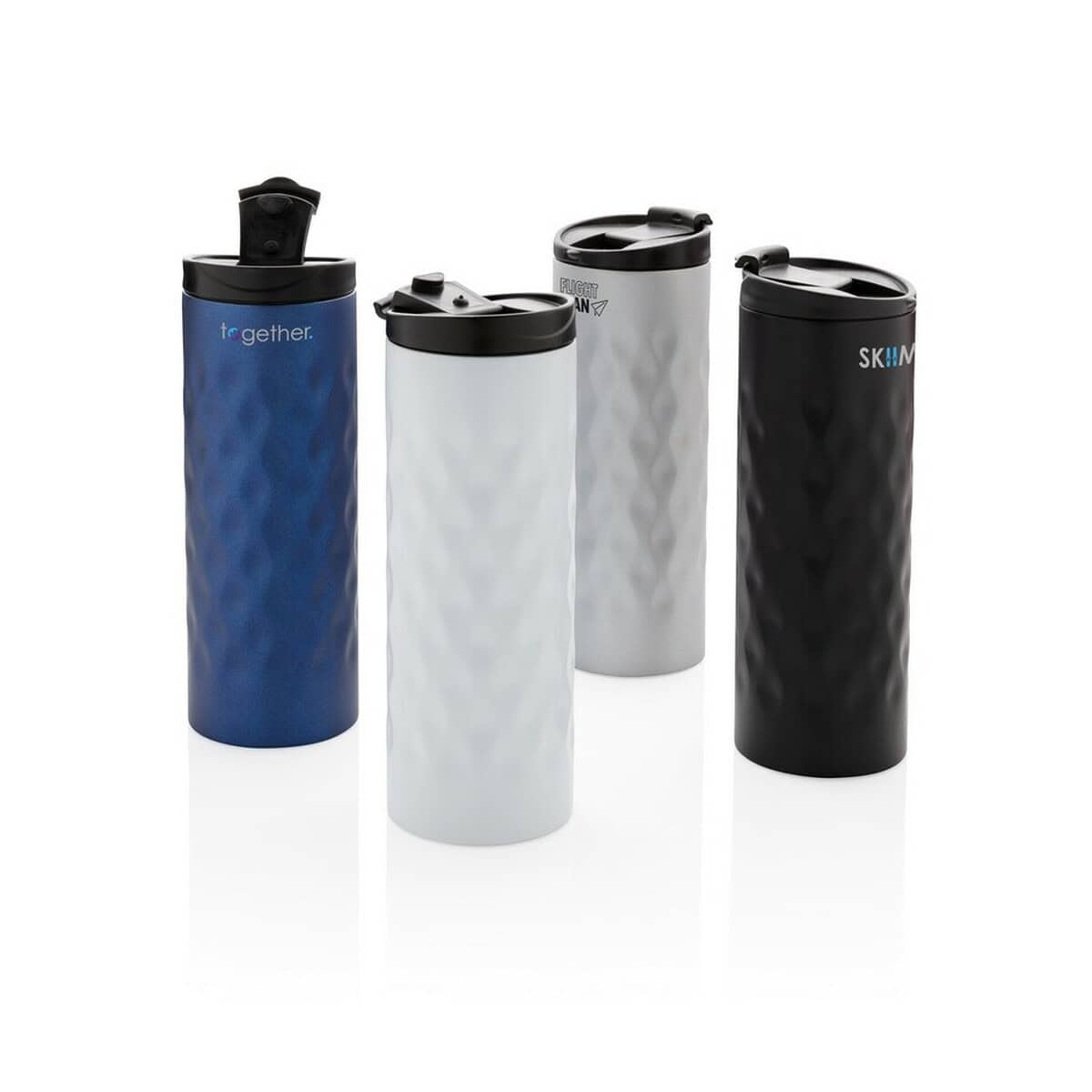 <pProdukt sprawdzi się w kampaniach employer branding, programach lojalnościowych, a także jako wyjątkowy upominek dla Twojej firmy – docenią go zarówno pracownicy biurowi, jak i kierowcy zawodowi czy studenci zabierający napoje na uczelnię. Jest znakomity na poranną kawę w drodze do pracy, izotoniczny napój po treningu lub aromatyczną herbatę podczas zimowego spaceru. Dzięki hermetycznej zakrętce nic się nie rozleje, a ergonomiczny kształt zapewnia pewny chwyt.