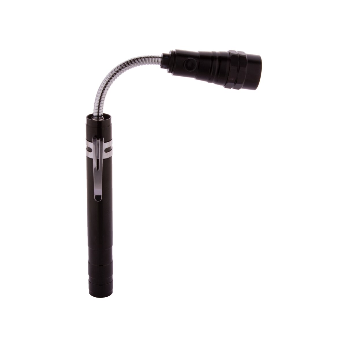 Latarka aluminiowa z 3 diodami LED to świetne rozwiązanie dla wszystkich, którzy szukają wygodnego i poręcznego źródła światła. Wyjątkowa konstrukcja zapewnia elastyczną, wysuwaną głowicę, która umożliwia skierowanie światła w konkretnym kierunku, zaś magnes znajdujący się na górze ułatwia przyczepienie źródła światła do metalowych powierzchni. Ponadto, latarka wyposażona jest w metalowy klips boczny, który umożliwia jej przypięcie do ubrania, plecaka lub innego przedmiotu. Maks. długość to 57 cm, a do jej działania potrzebna jest bateria guzikowa.