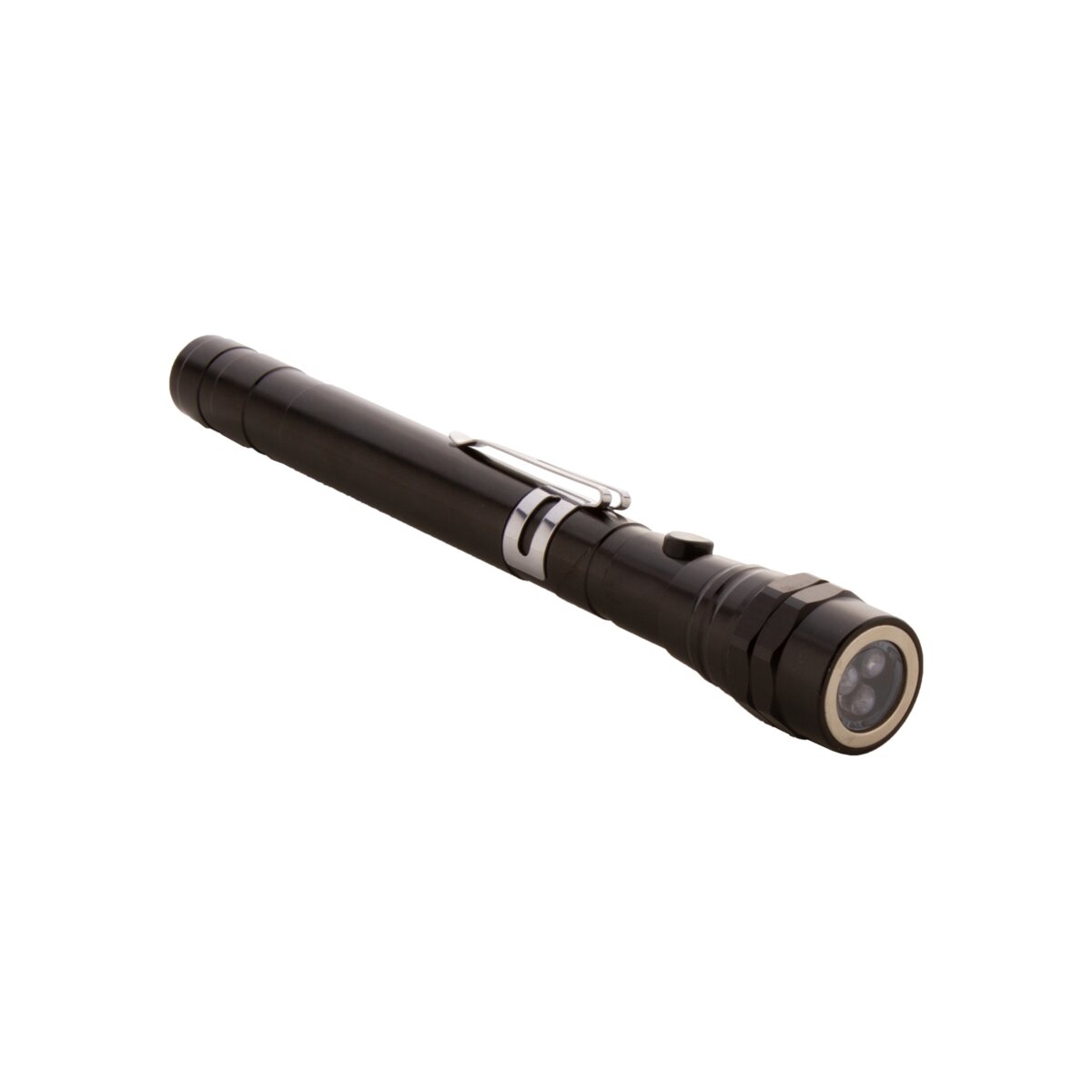 Ta aluminiowa latarka to doskonały wybór dla wszystkich, którzy szukają wygodnego, skutecznego i poręcznego źródła światła. Niezawodne 3 diody LED, elastyczna, wysuwana głowica, magnes na górze i metalowy klips boczny to funkcje, które wyróżniają ten produkt i dają wiele możliwości. Przy kompaktowej długości 57 cm, aluminiowa latarka jest praktyczna i łatwa w użyciu, a bateria guzikowa zapewnia długotrwałe świecenie.