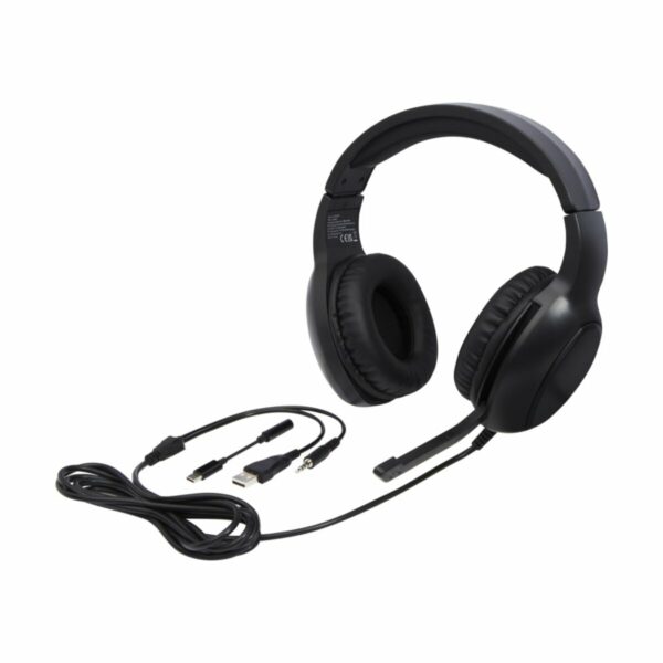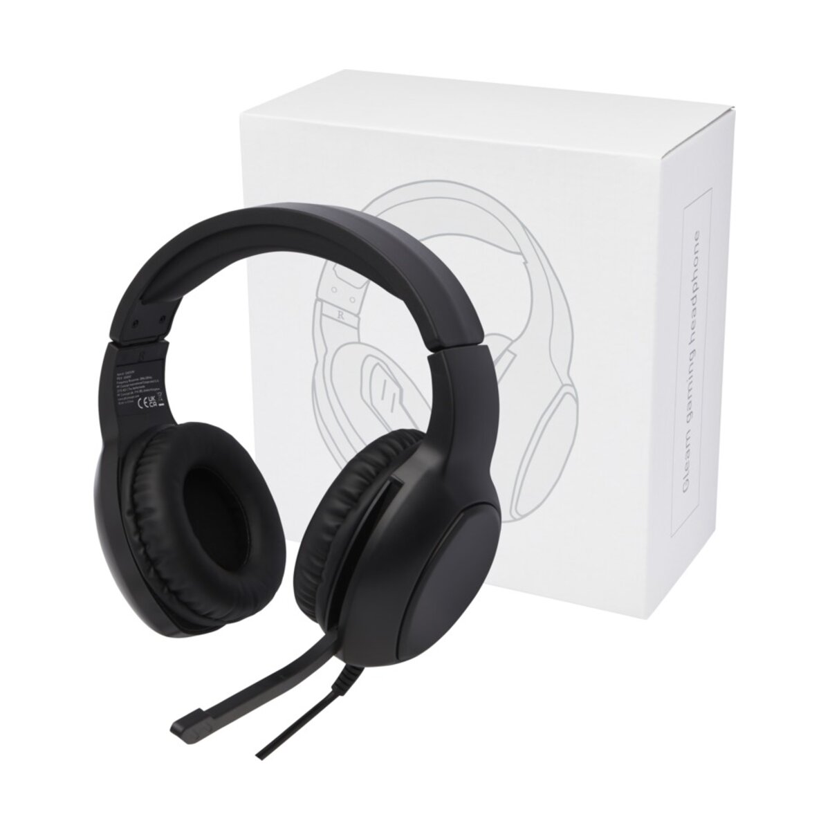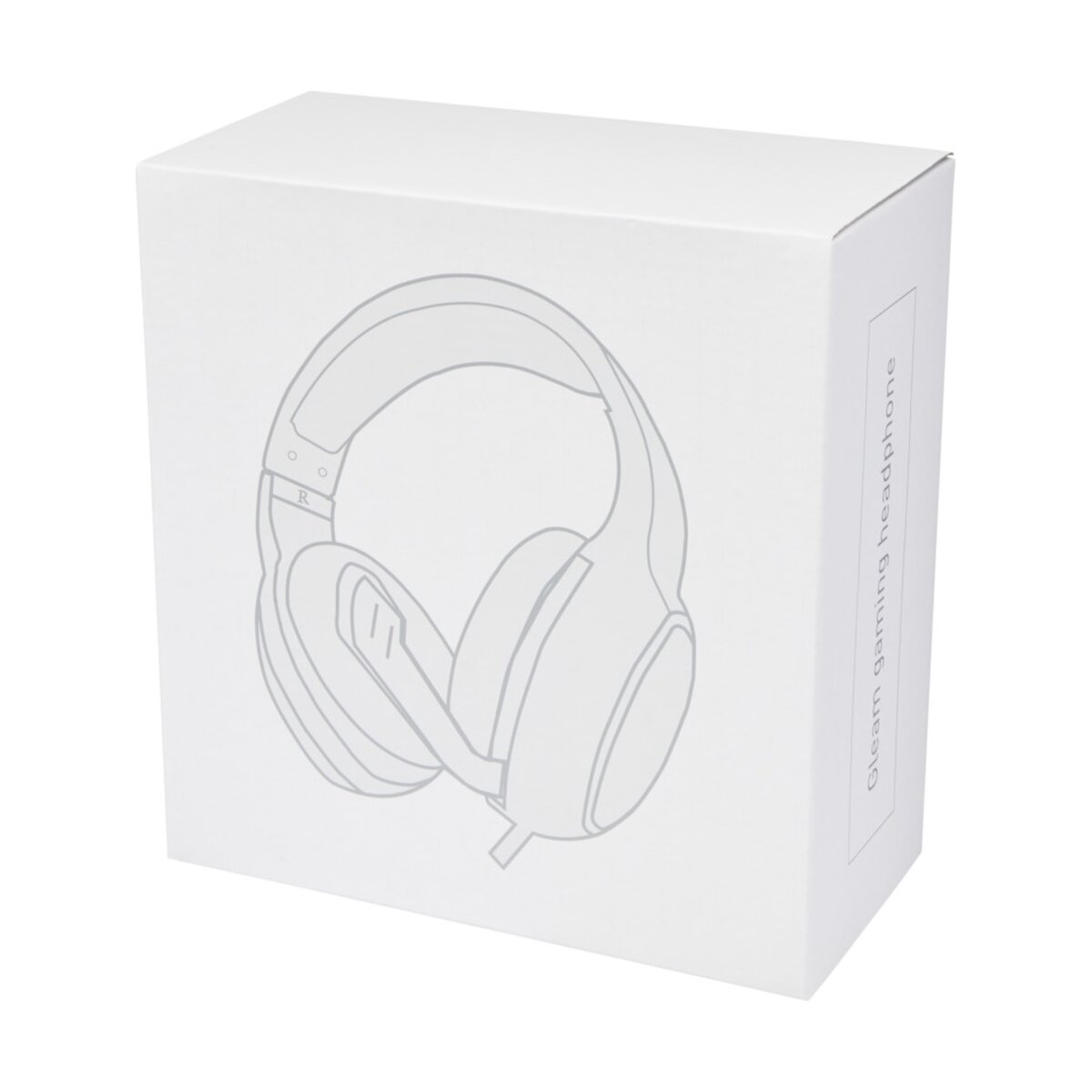 Gamingowy zestaw słuchawkowy Gleam zapewnia wysokiej jakości dźwięk stereo z wbudowanym mikrofonem najwyższej jakości. Zawiera 2 metrowy kabel z przewodami z końcówką AUX 3,5 mm i złączem USB-A. Wejście AUX 3,5 mm zapewnia dźwięk i obsługę mikrofonu po podłączeniu do komputera lub urządzenia mobilnego. Przejściówka AUX do złącza USB typu C jest dołączona do urządzeń z wejściami USB typu C. Dzięki dołączonym przejściówkom i wbudowanemu kablowi, te słuchawki gamingowe są zgodne ze wszystkimi urządzeniami m. in. komputerami osobistymi, laptopami, telefonami komórkowymi, tabletami, konsolą PlayStation i Nintendo Switch. Łatwa konfiguracja bez konieczności stosowania sterownika. Wbudowana regulacja głośności na nausznikach ułatwia obsługę, a dodatkowa wyściółka w nausznikach i regulowany kabłąk na głowę sprawiają, że są wygodne w noszeniu. Aby możliwe było wykorzystanie funkcji podświetlania, konieczne jest wykonanie laserowego grawerowania. Sprzedawane w pudełku upominkowym wykonanym z materiału z recyklingu.